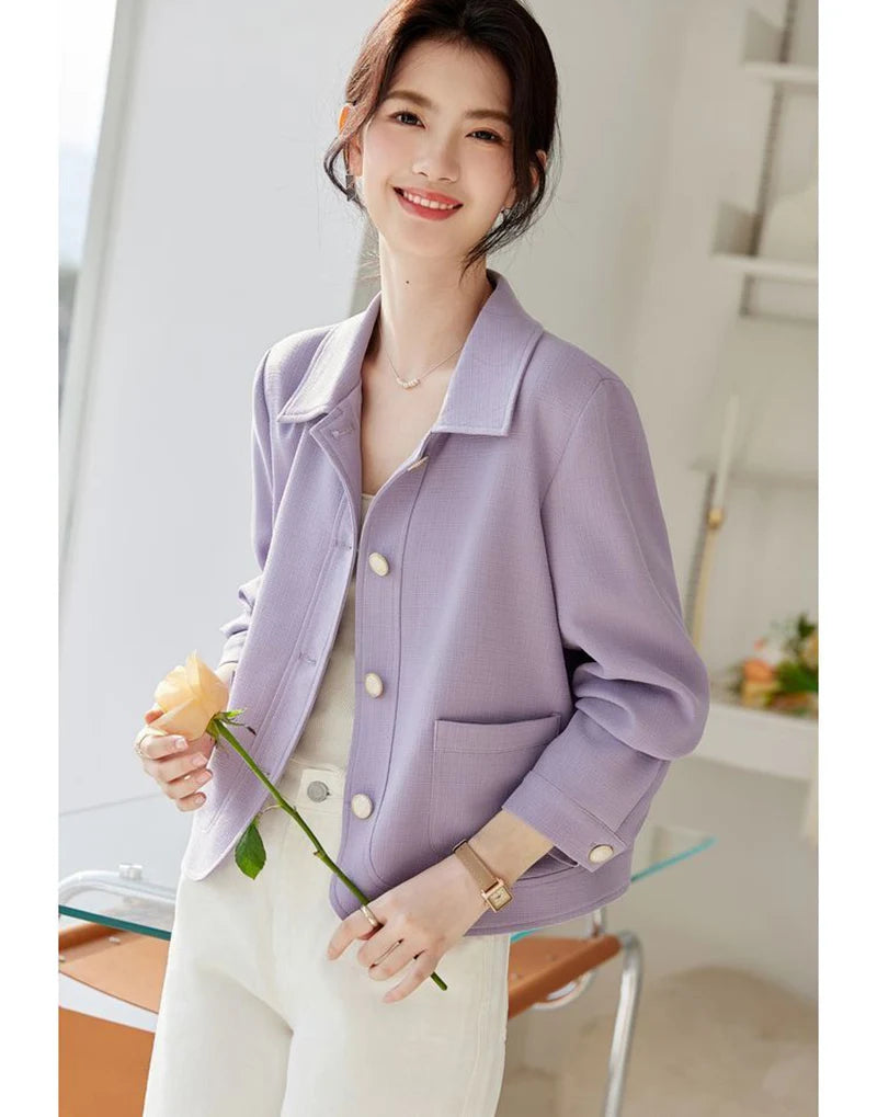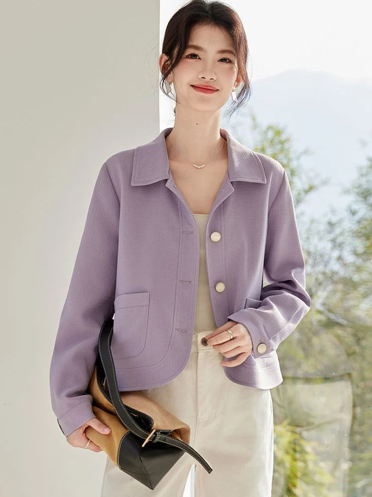 Lunivop Elegant Slim Purple Jacket Women Sweet Long Sleeve Small Fragrance Coat Casual Fall Winter Lady French Pockets Fashion Tops