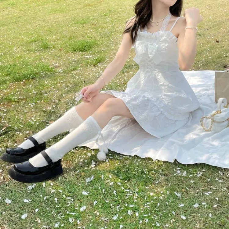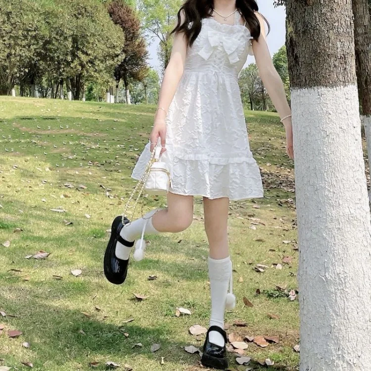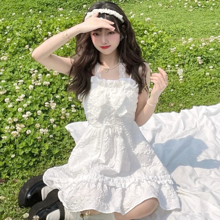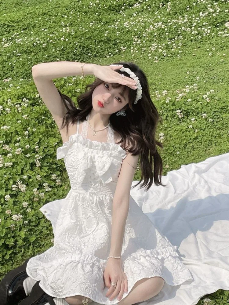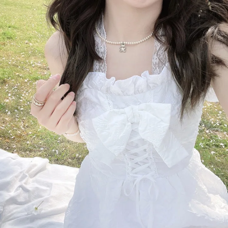 Lunivop Elegant Sweet Halter Camisole Dresses 2025 Summer New White Dress for Women Fashion All-match Slim Waist Vestidos De Mujer