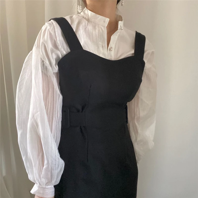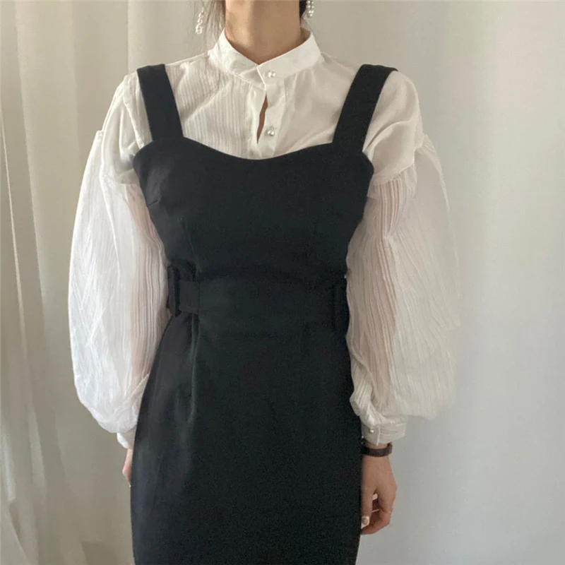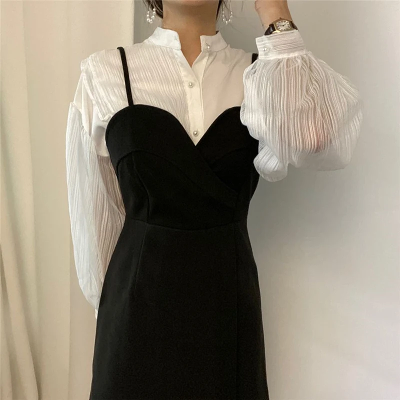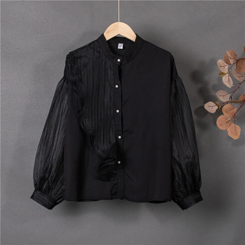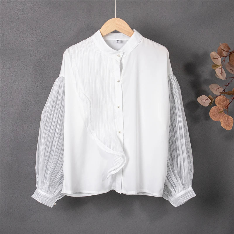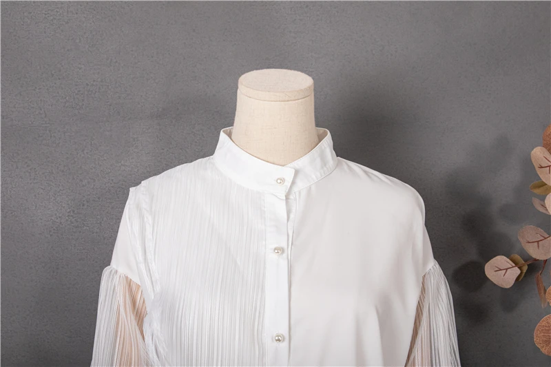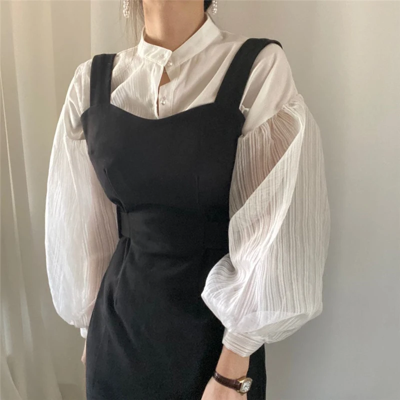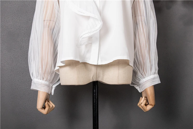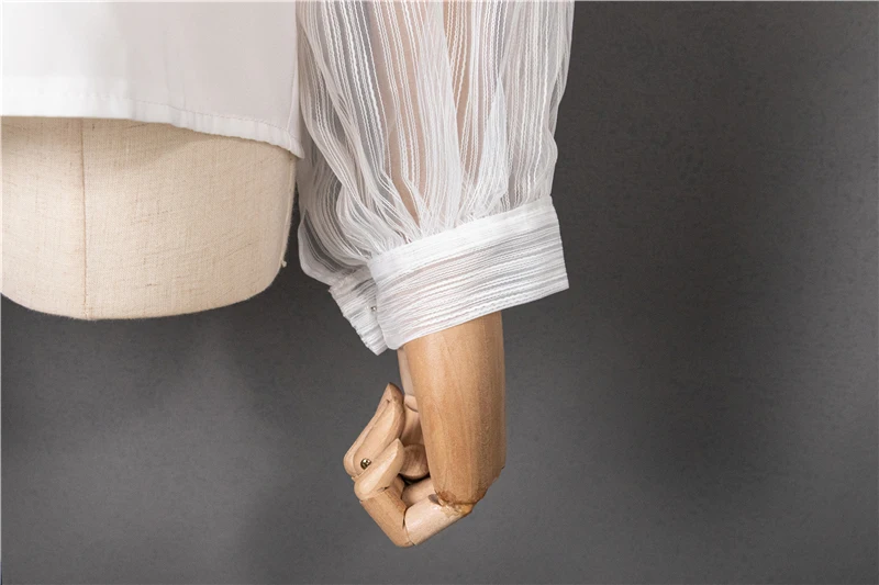 Lunivop Elegant White Shirts Women Vintage Mesh Patchwork Long Sleeve Blouses Summer Ladies Korean Black Tulle Sheer Chic Tops New