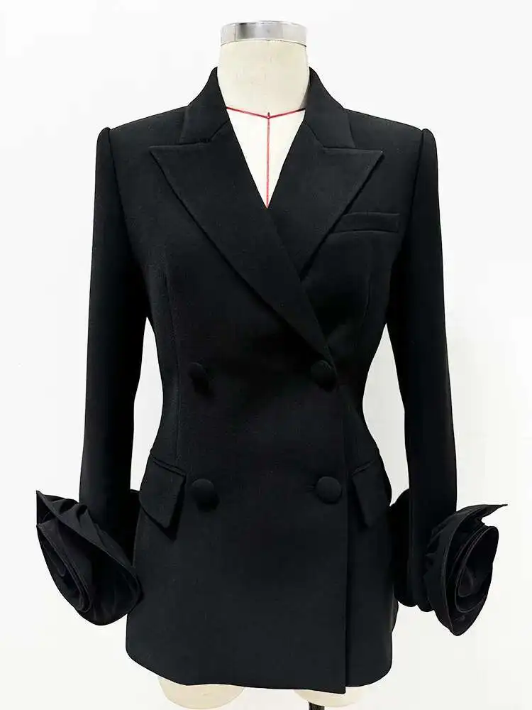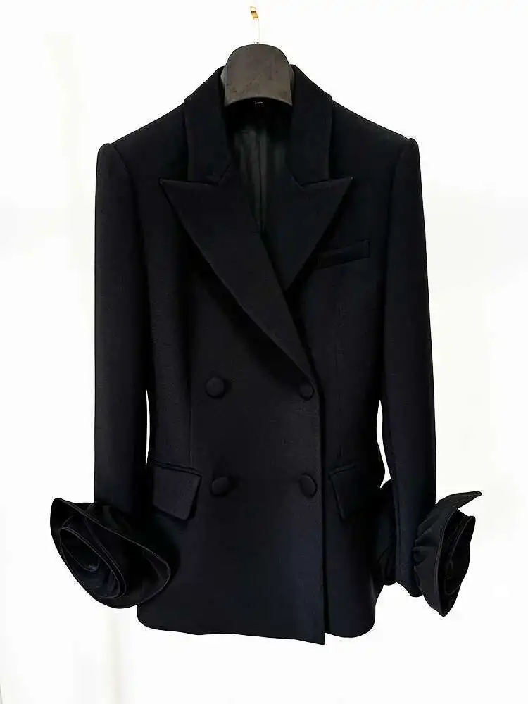 Lunivop Elegant Women's 3D Flower Spliced Blazer Lapel Double Breasted Long Sleeve Blazers Female Autumn 2025 New