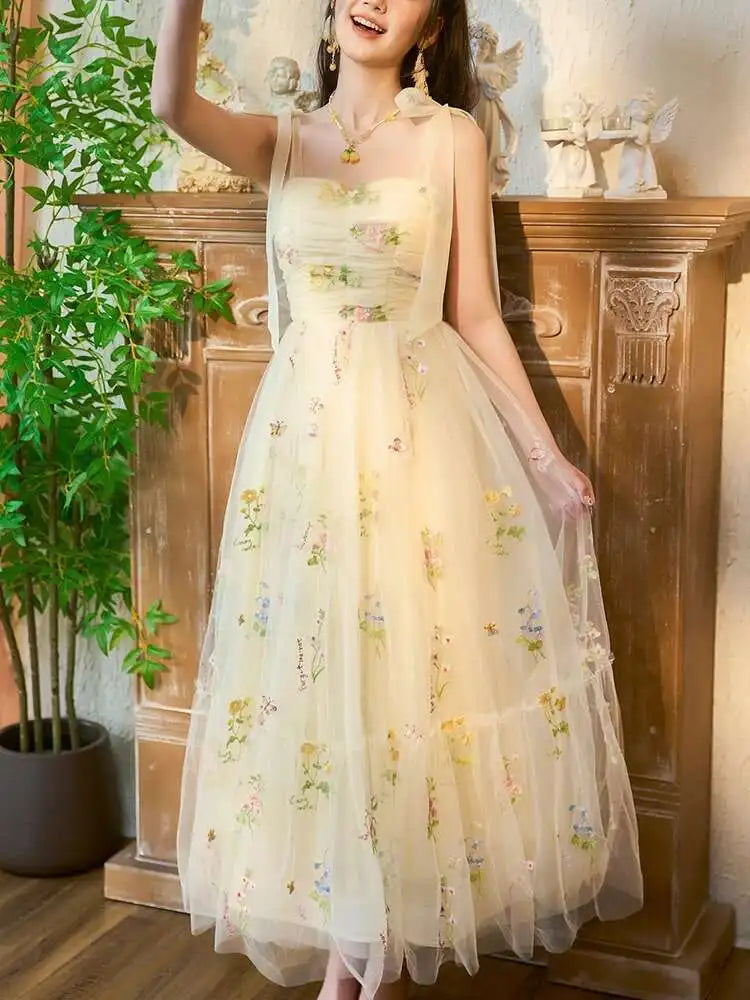 Lunivop Embroidered Mesh Strapless Dresses For Women Slash Collar High Waist Thin Elegant Dress Female Spring 2025 New
