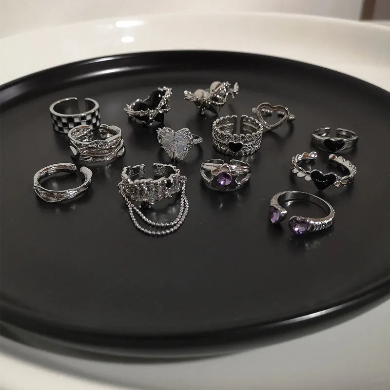 Lunivop Enamel Heart Rings Gothic Fashion Cool Y2K Rings For Women Vintage Chunky Finger Girl Party Jewelry Gift