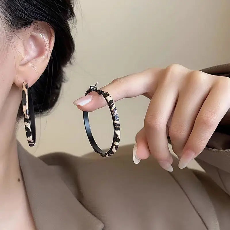 Lunivop Exaggerated Metal Geometry Large Circle Leopard Print Hoop Earrings for Women Fashion Autumn and Winter Ear Jewelry Gift