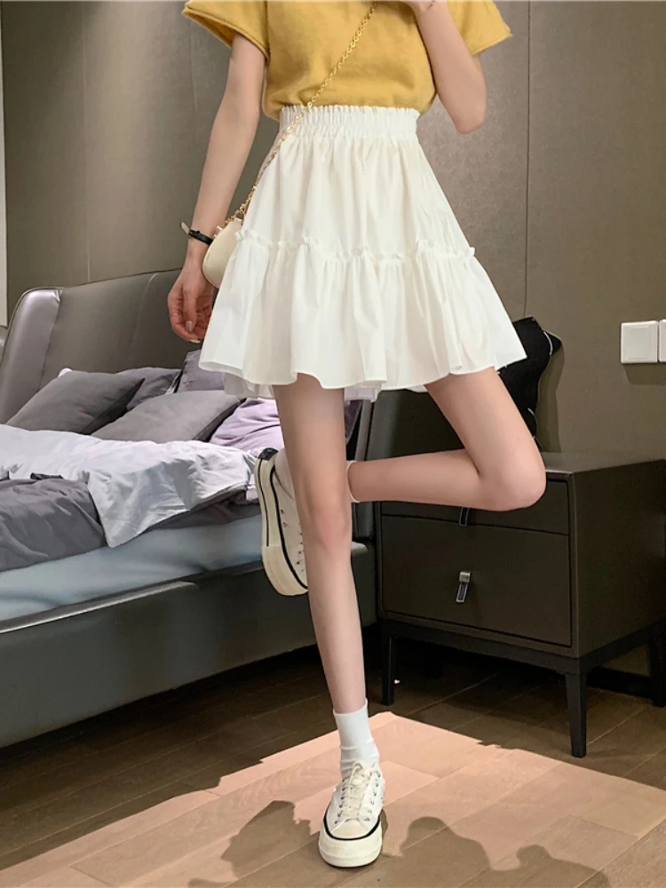 Lunivop Fairycore A Line Pleated Skirt Women White Mini Skirt Korean Fashion Clothes Girl Clothing Y2k Kawaii Preppy Style Fairy Core