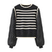Lunivop Fake Two Piece Sweater Women Contrast Striped Puffed Sleeve Knitted Pullover Jumper Blouse Korean Fashion Top Fall Winter Outfit