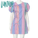 Lunivop Fashion Bow Lace Up Rainbow Stripe Dress For Women Puff Sleeve Mini Dress Slim High Waist Clubs Party Clothes Versatile