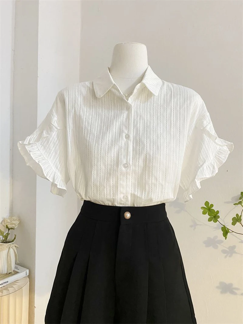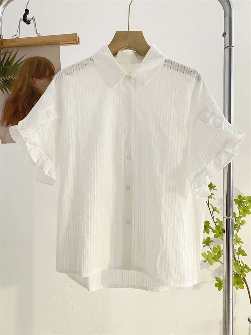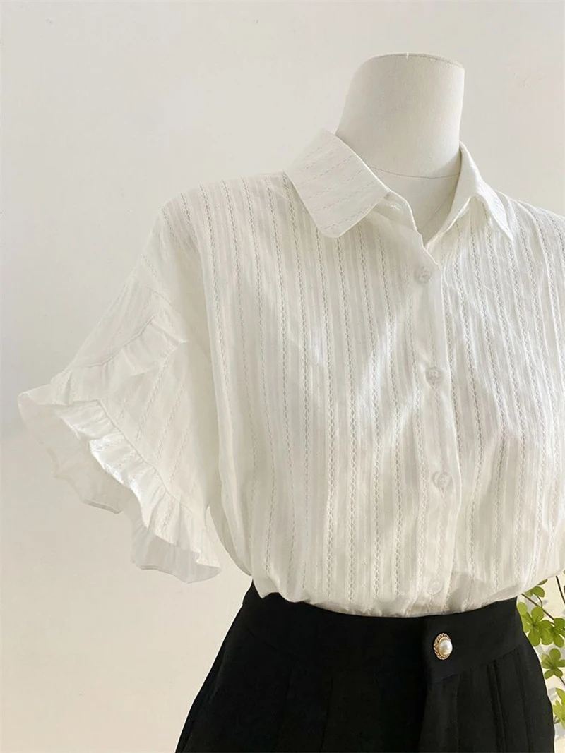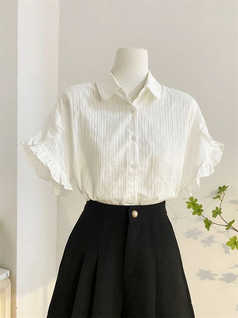 Lunivop Fashion Casual White Shirt Women Sweet Flare Sleeve Cute Blouse Loose Preppy Style Female Summer Chic Simple All Match Tops