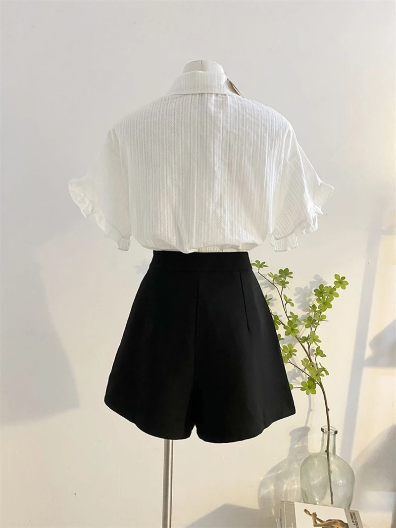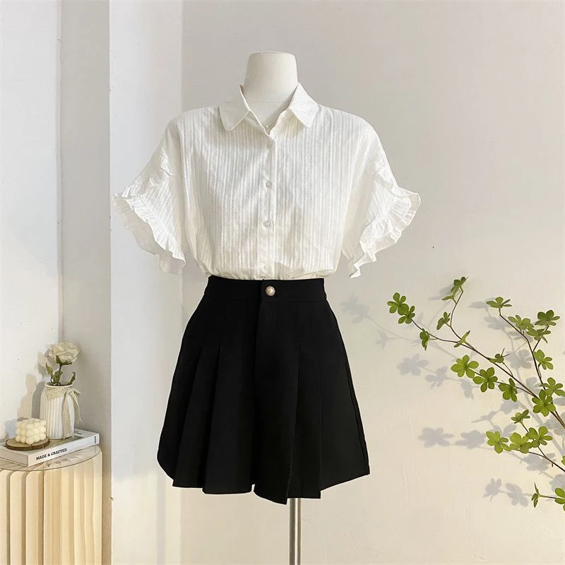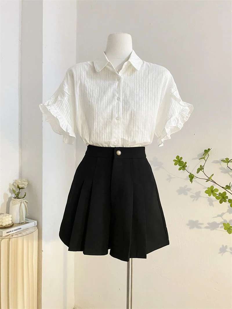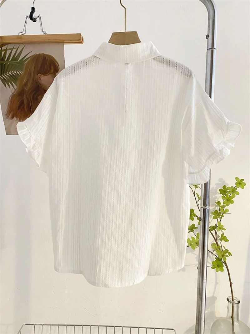 Lunivop Fashion Casual White Shirt Women Sweet Flare Sleeve Cute Blouse Loose Preppy Style Female Summer Chic Simple All Match Tops