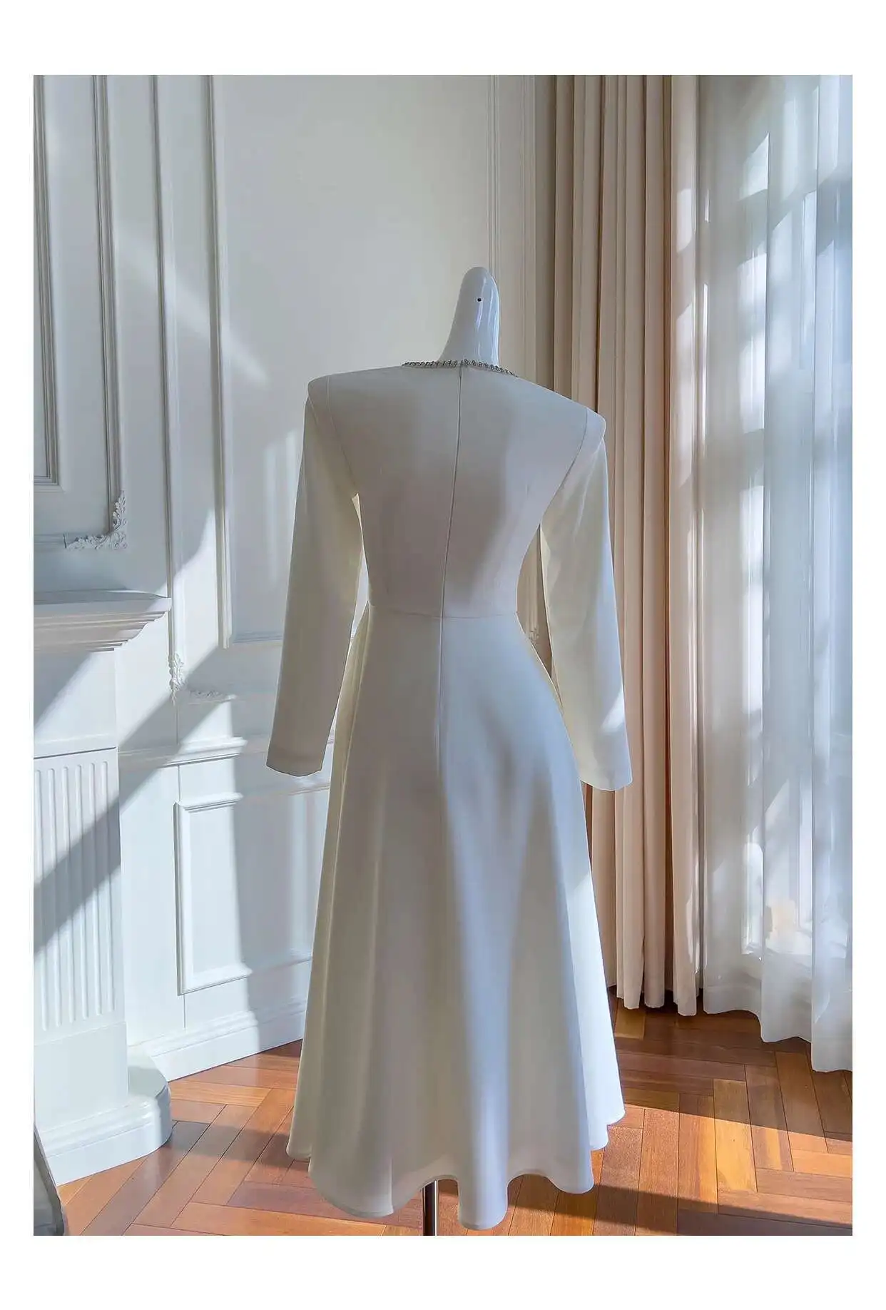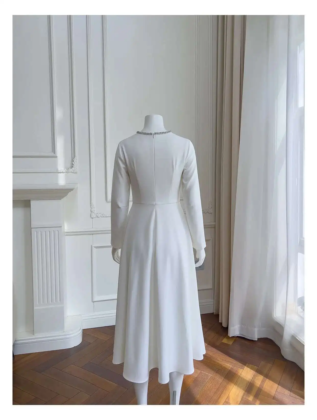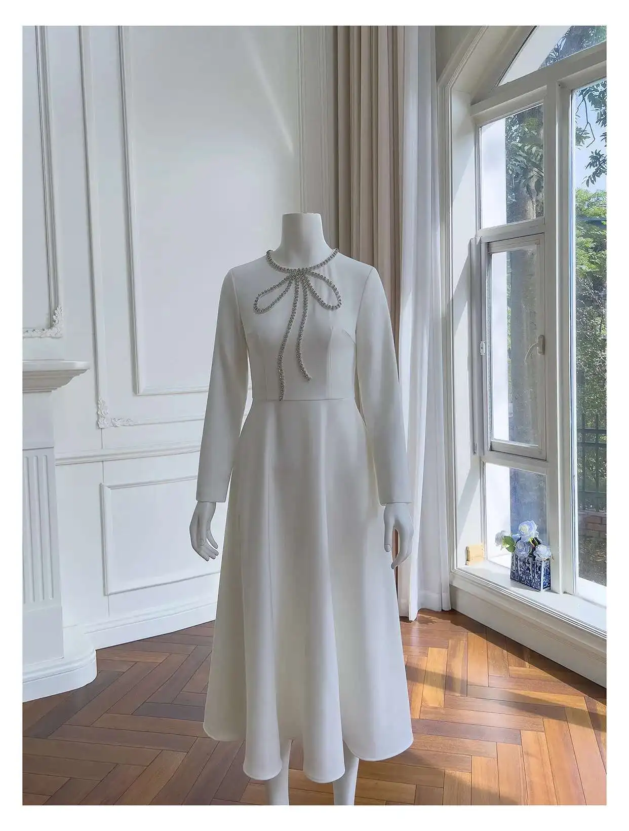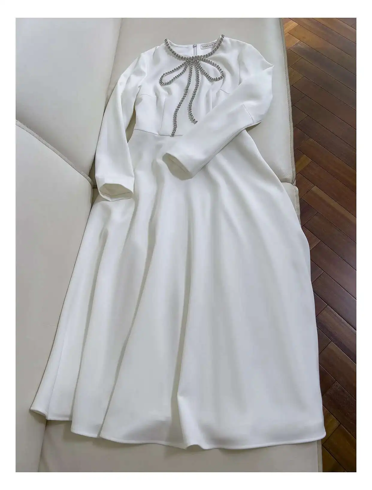Lunivop Fashion Elegant Formal Dresses For Women Spliced Diamonds O Neck Long Sleeve High Waist Dress New Clothing