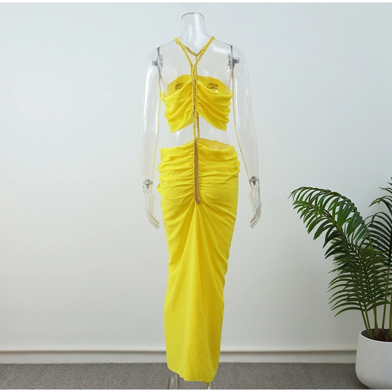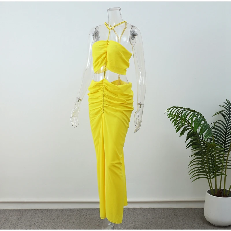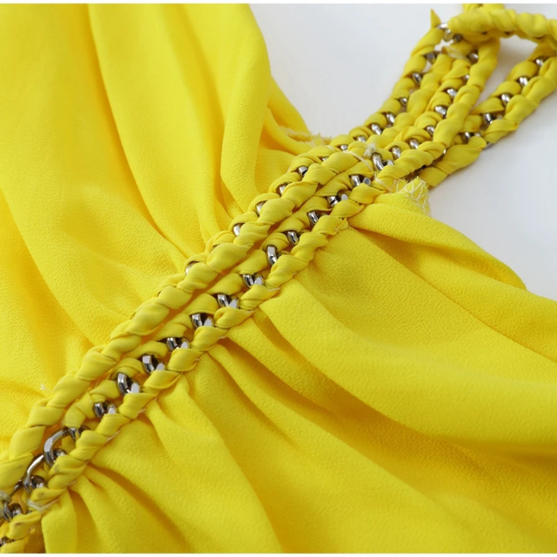 Lunivop Fashion Fish Bone Chain Woven Dress For Women Sexy Off Shoulder Hollow Out Maxi Sling Robe 2024 Summer Lady Beach Party Dresses