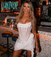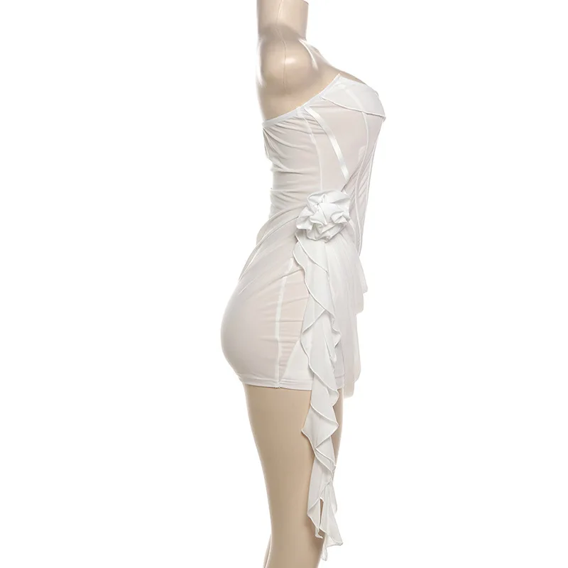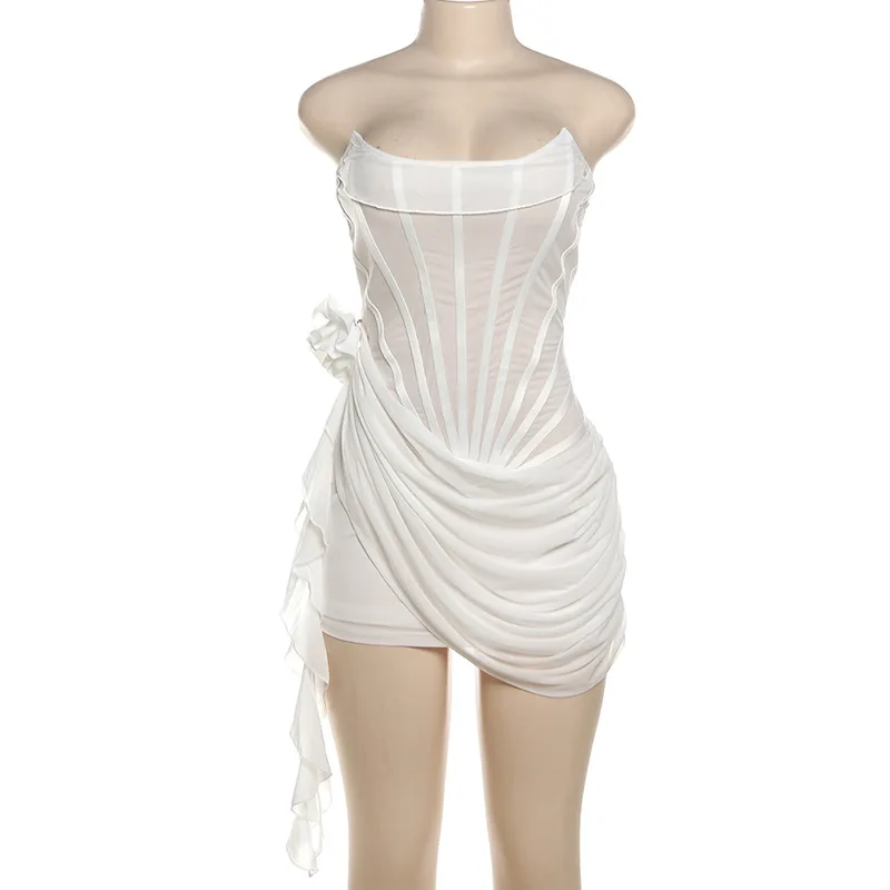 Lunivop Fashion Fish Bone Mesh Splice Backless Strapless Floral Applique Dress For Women Sexy See Through Short Gown Dress Female