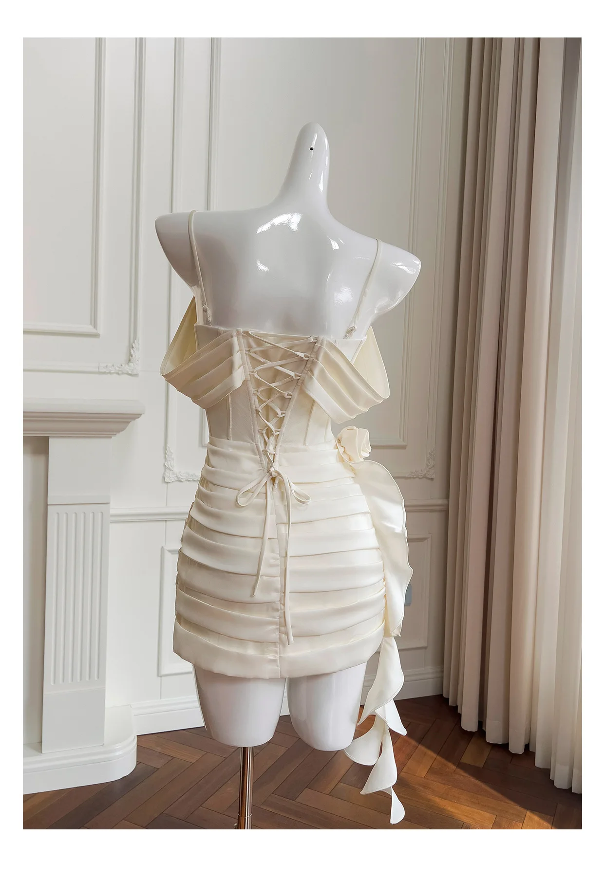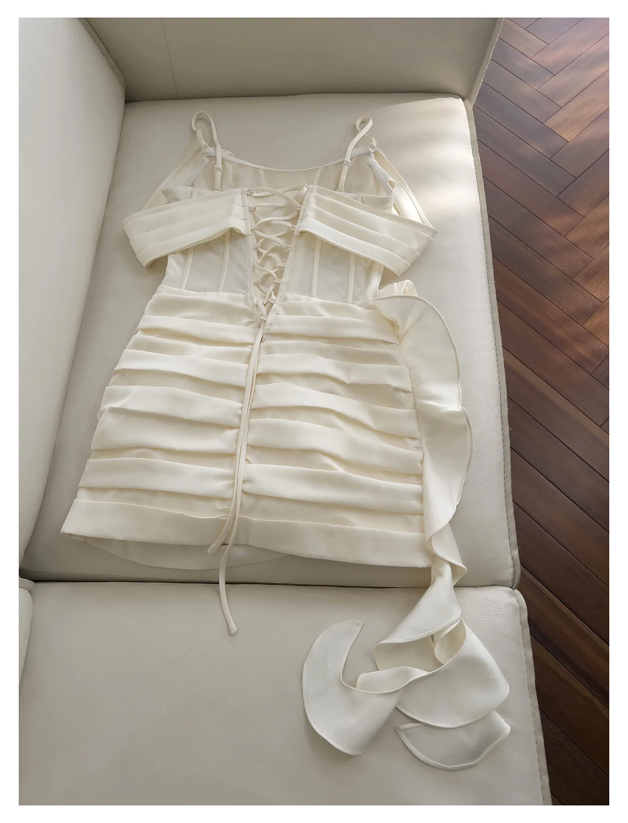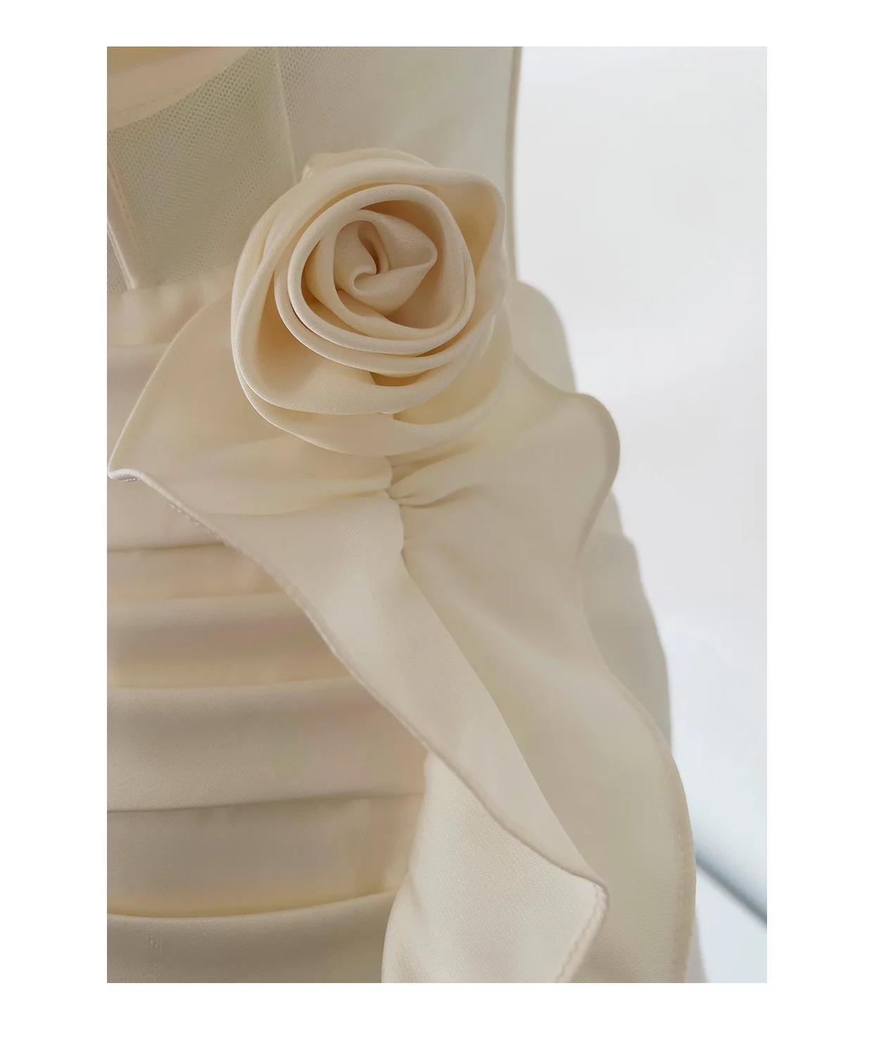 Lunivop Fashion Flower Fold Dress Women's Strapless Fishbone Waist Cinching Slimming Dresses 2025 Summer New Tide