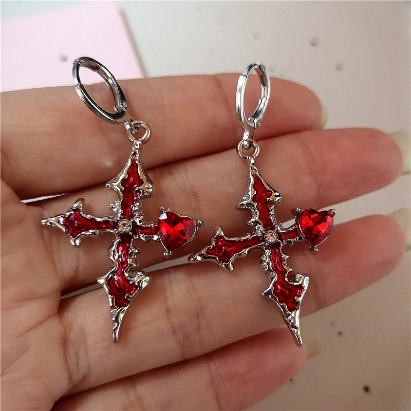 Lunivop Fashion Gothic Red Cross Drop Earrings Women Men Halloween Jewellery Street Punk Hip Hop Grunge 2000s EMO Jewelry Accessories