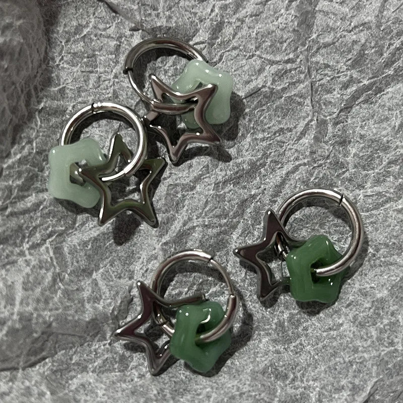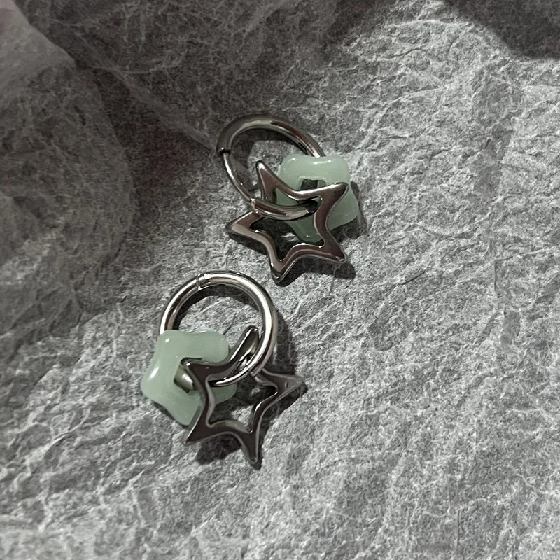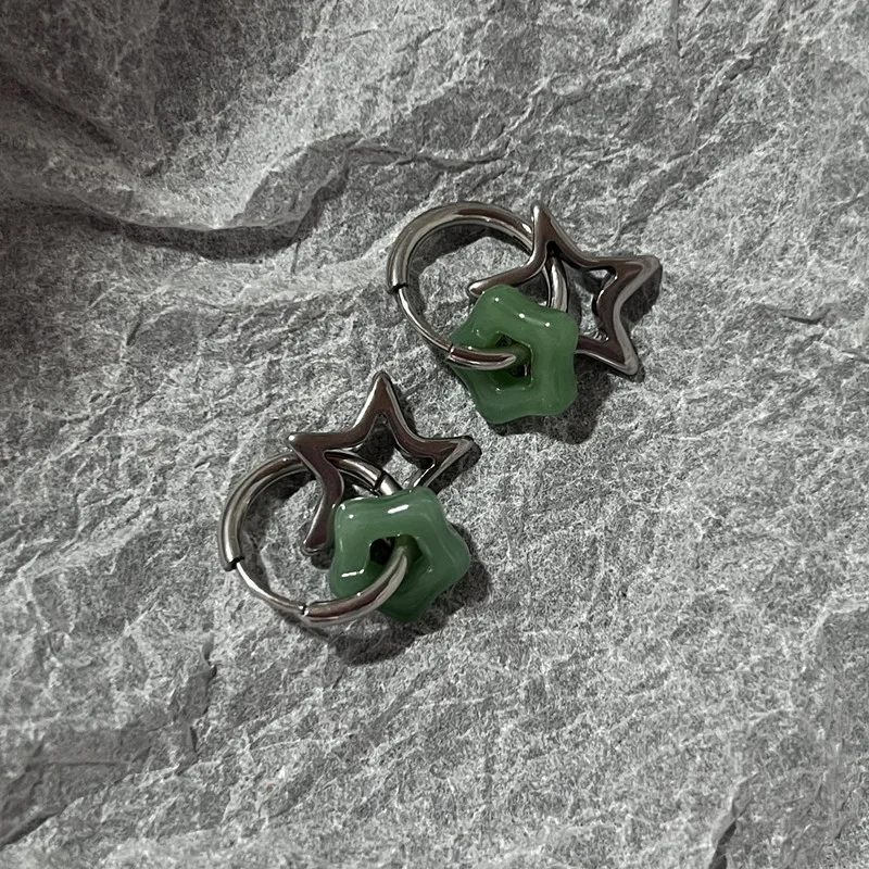 Lunivop Fashion Imitation Jade Pentagon Star Earrings Niche Design Feeling Ear Buckle Female New Light Luxury Ear Accessories