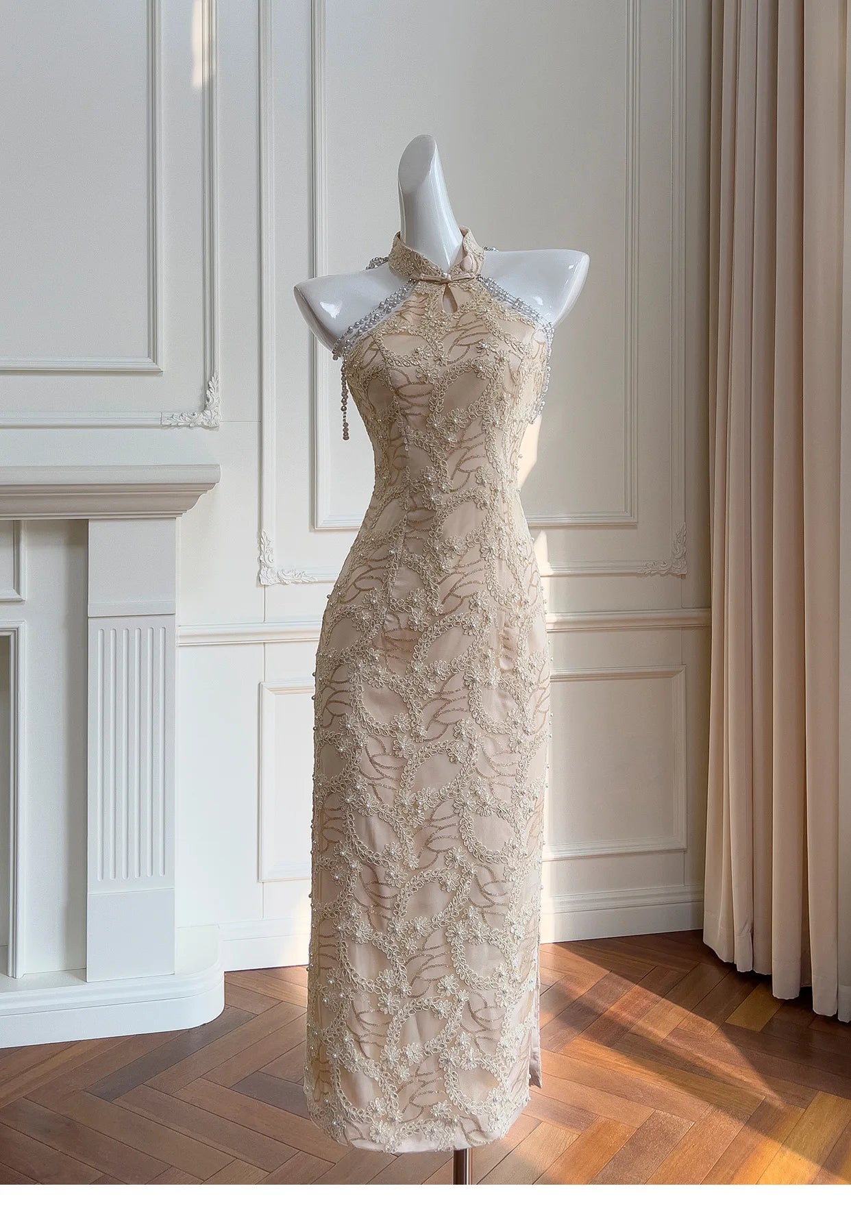 Lunivop Fashion Pearl Embroidered Dress Women's Sleeveless Waist Retraction Dresses 2025 Summer New Tide
