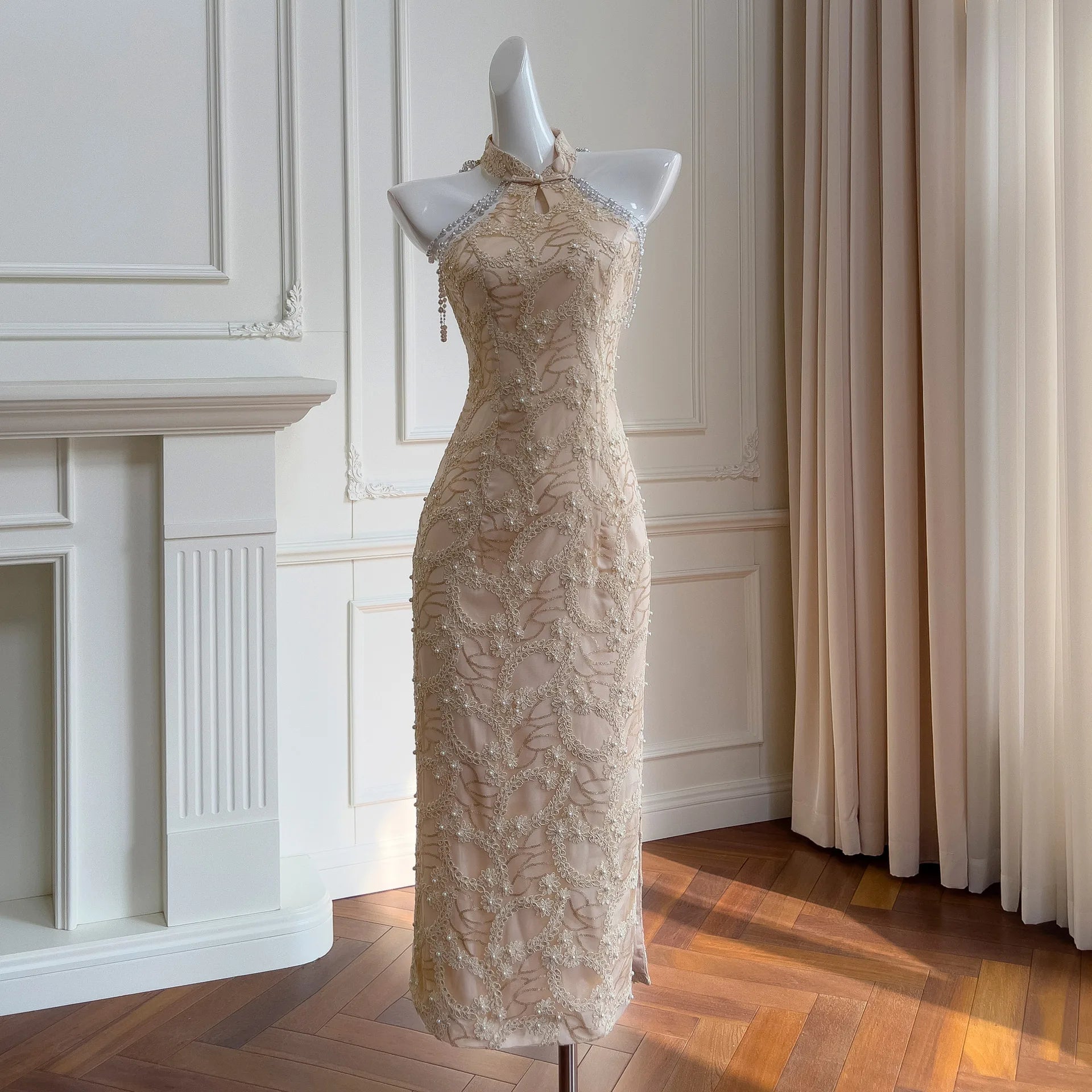 Lunivop Fashion Pearl Embroidered Dress Women's Sleeveless Waist Retraction Dresses 2025 Summer New Tide