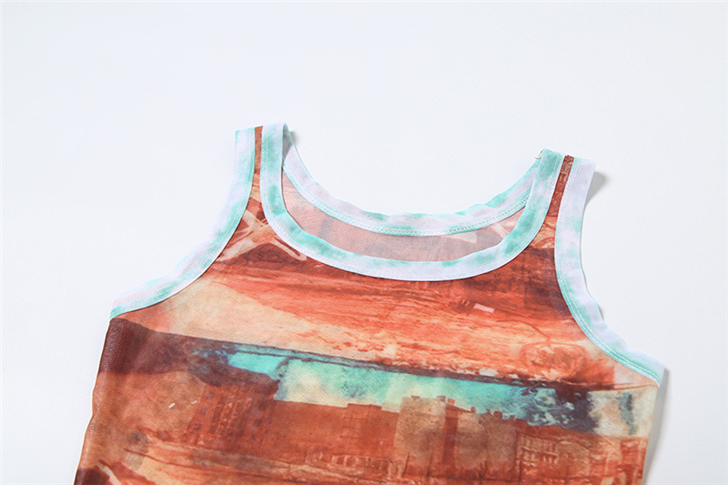 Lunivop Fashion Printed Mesh Sheer Crop Top Streetwear Graphic Tank Tops Sexy Y2k Summer Clothes Women Spicy Girl Outfits