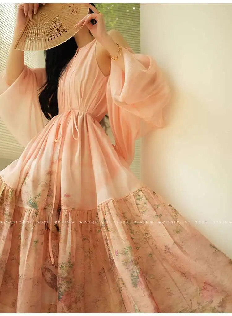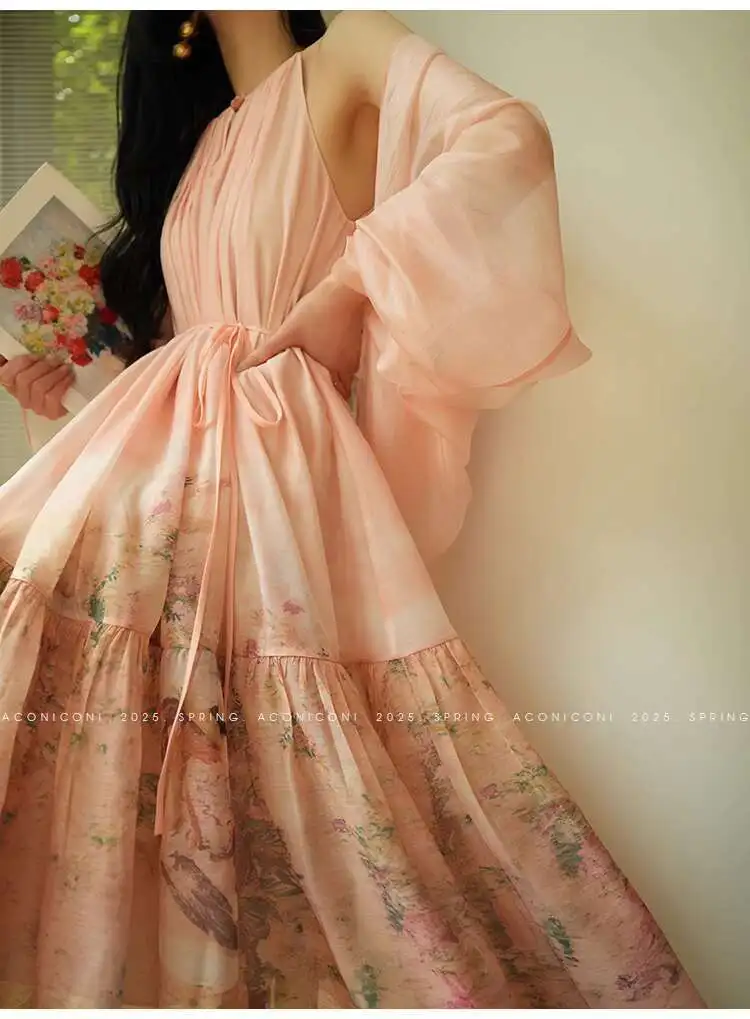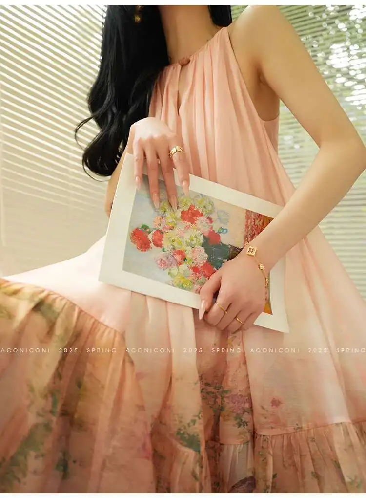 Lunivop Fashion Printing Dress Women's Sleeveless Waist Retraction Folds A Line Dresses 2025 Summer New Tide