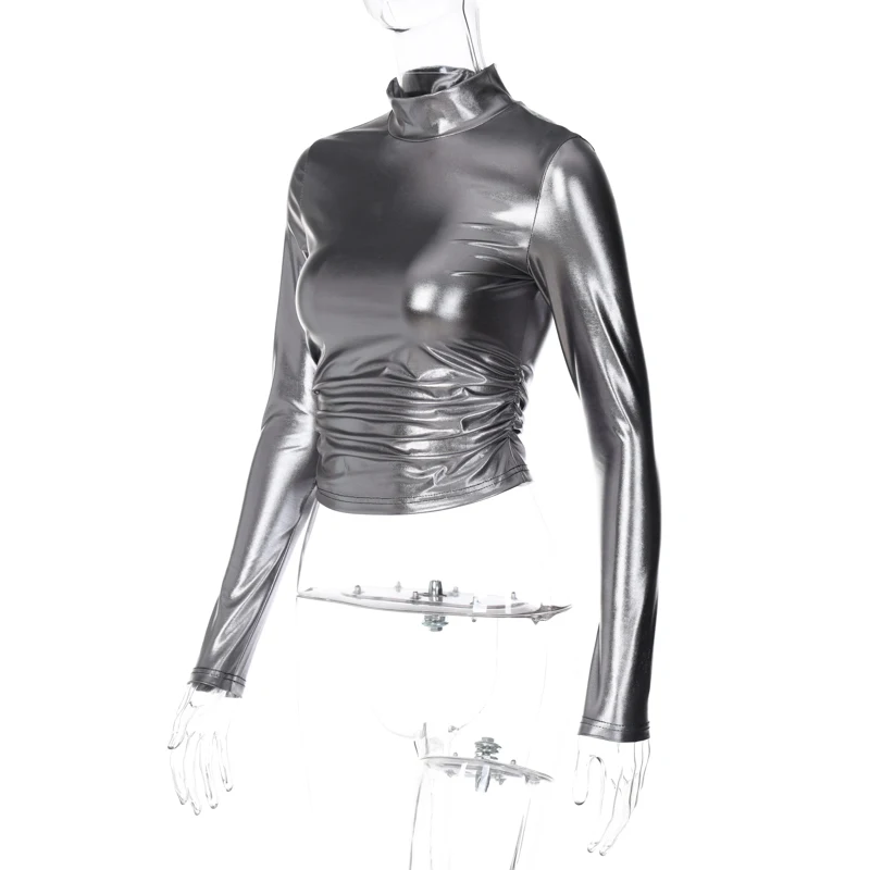 Lunivop Fashion Pu Long Sleeve Slim T-Shirt Sexy Casual Streetwear Party Club Vacation Daily Outfit Y2K Summer Women Clothes