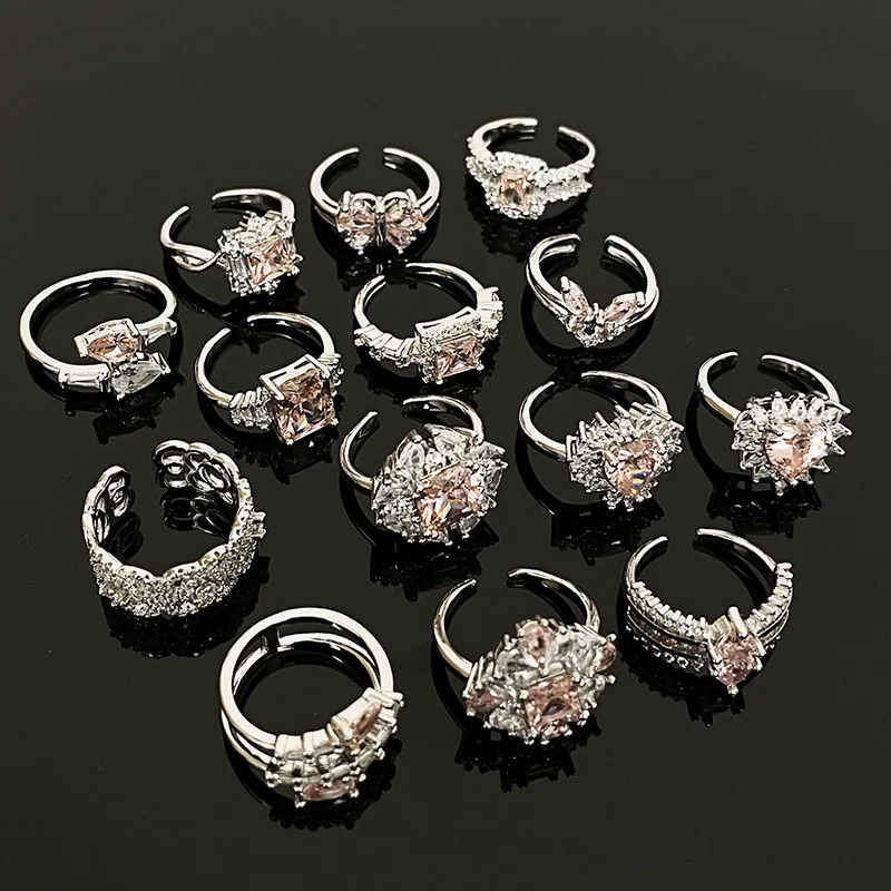 Lunivop Fashion Sakura Flower Ring Shiny Rhinestone Pink Crystal Ring Women Elegant Romantic Valentine's Day Wedding Party Jewelry Gifts