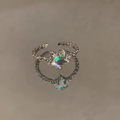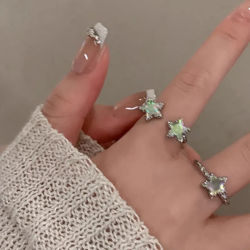 Lunivop Fashion Shiny Rhinestone Opening Couple Rings For Women Men Vintage Crystal Star Adjustable Ring Lover Y2K Jewelry