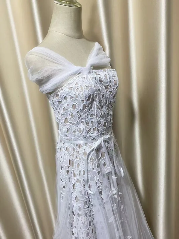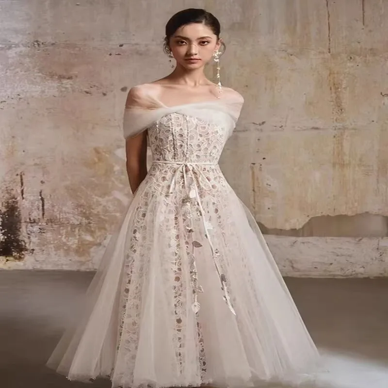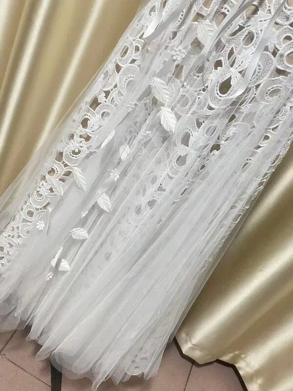 Lunivop Fashion Solid Color Lace Dress Women's Strapless Hollow Out A Line Dresses 2025 Summer New Tide