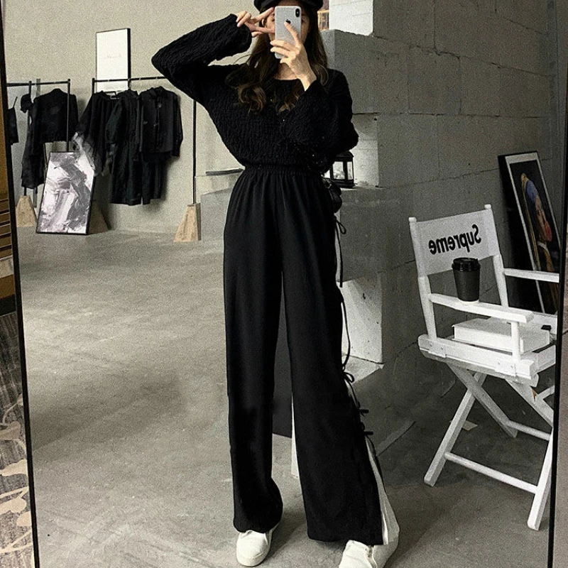 Lunivop Fashion Spliced Wide Leg Pants Women High Waist Bow Chic Design Straight Trousers Spring Basic Oversized 4Xl Casual Pants