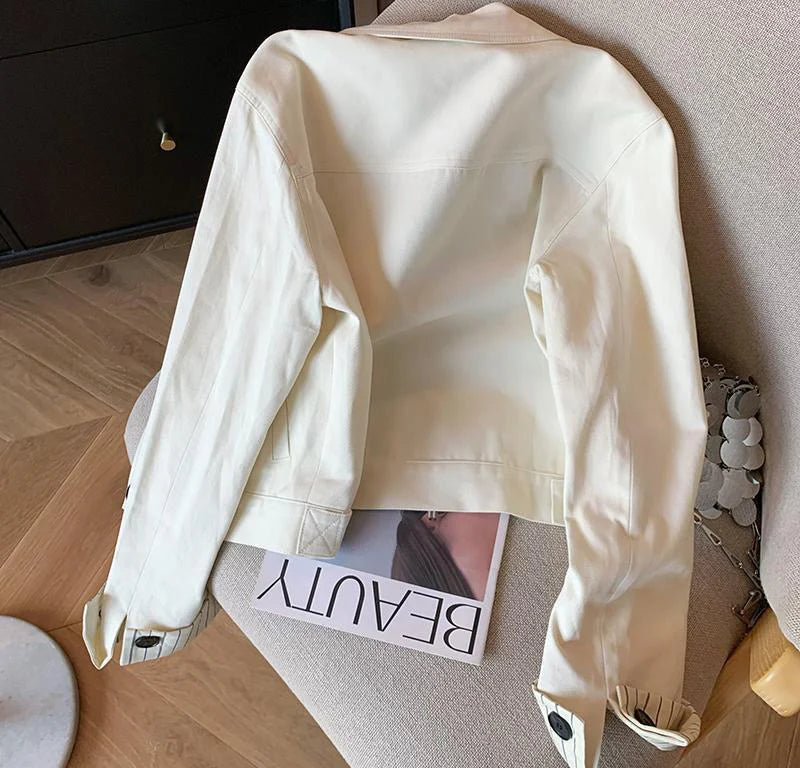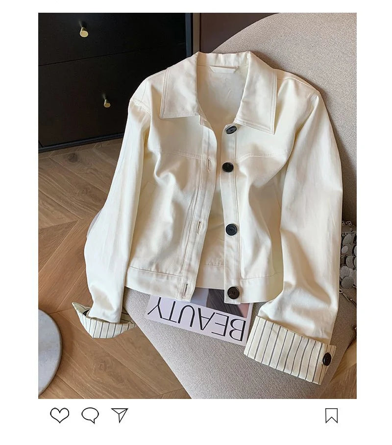 Lunivop Fashion Sweet Slim Denim Jacket Women Korean Long Sleeve Striped Patchwork Short Coat Fall Winter Female Chic Outwear Tops
