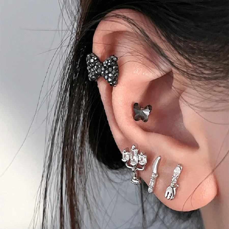Lunivop Fashion Vintage Candlestick Knife Bow Heart Zircon Stainless Steel Earrings for Women Niche Design Party Jewelry Cosplay Gifts