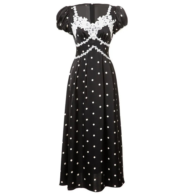 Lunivop Fashion Women Dress Short Sleeve V Neck Lace Patchwork Polka Dot Print Female Party Dresses New Tide