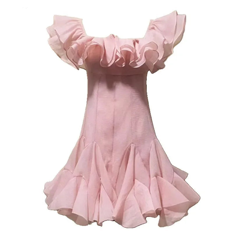 Lunivop Fashion Women Dress Sleeveless Slash Neck Solid Color Lotus Leaf Edge Design Female Party Dresses New Tide