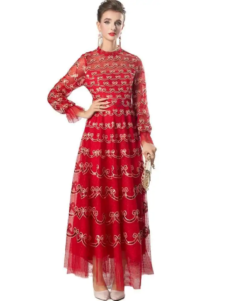 Lunivop Fashion Women's Elegant Dresses Sequins Embroidery Long Sleeve Princess Mesh Dress 2025 Spring New Female Clothing