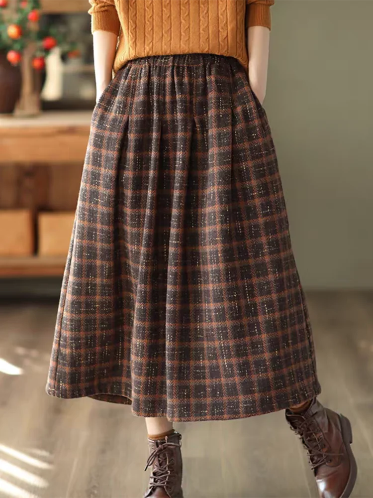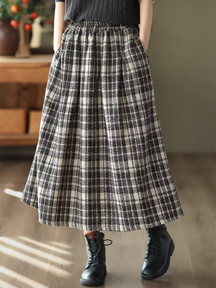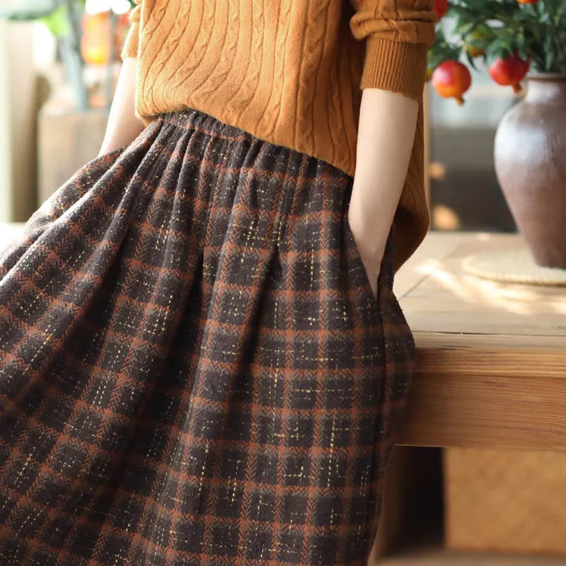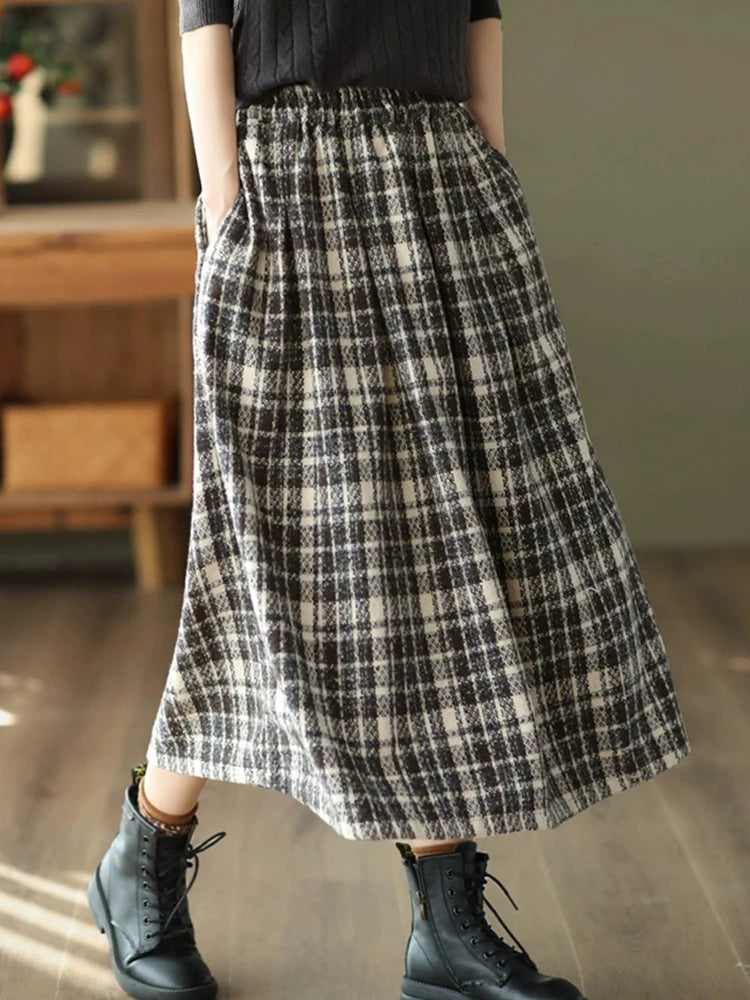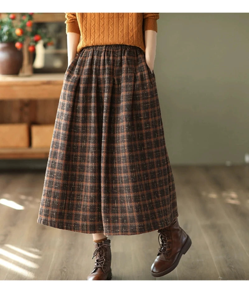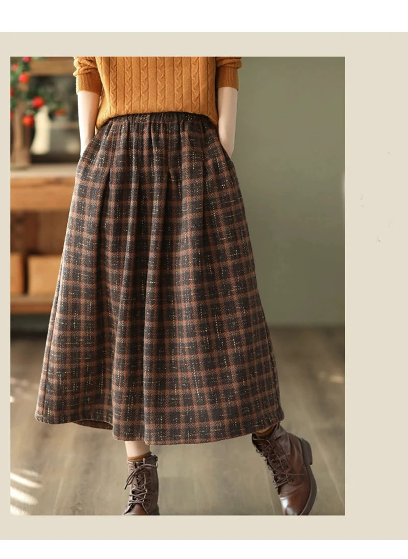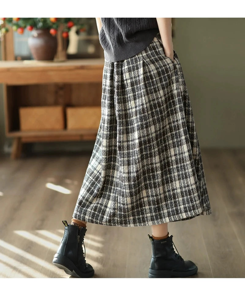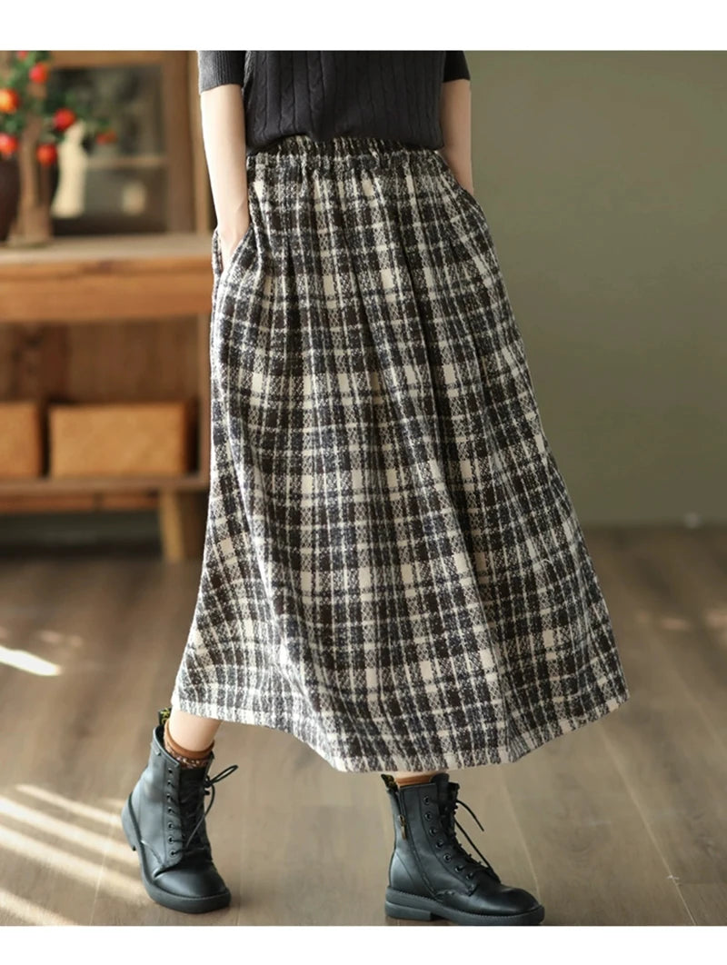 Lunivop Faux Woolen Plaid Long Skirts Women Loose Vintage Fall Winter A Line Skirt Casual High Waist Japan Harajuku Warm Long Skirt