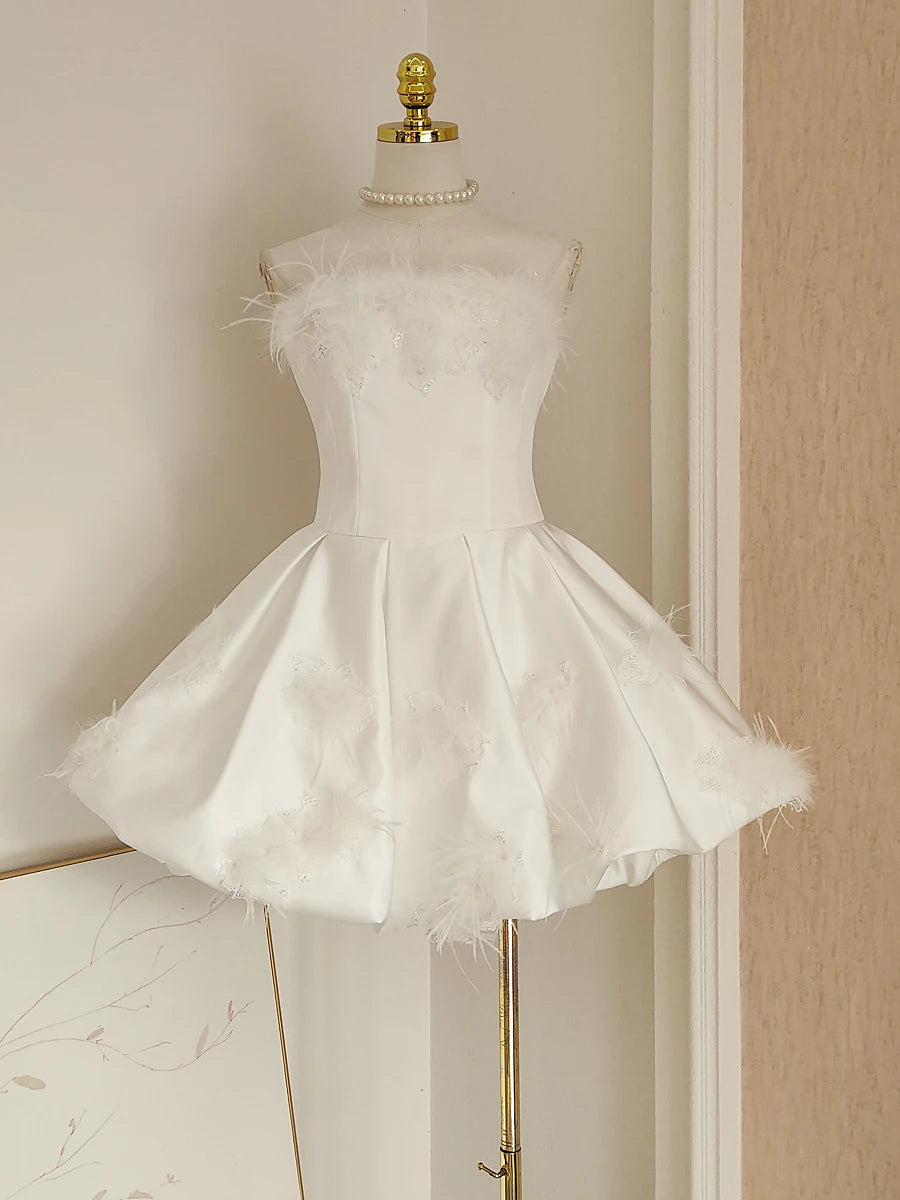 Lunivop Feather Sleeveless Solid Sequins Women Lace-up Dress A-line Long Hem Spliced Zipper High Waist Dresses