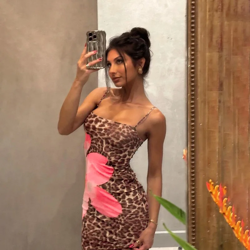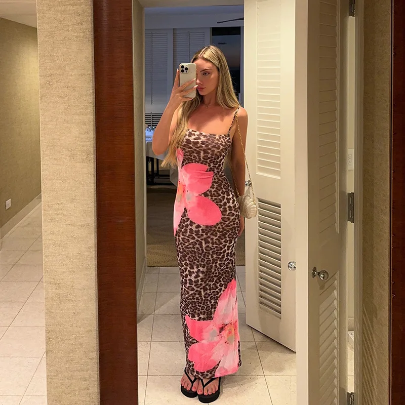 Lunivop Floral Leopard Print Sexy Maxi Dress Women Gown Fashion Spaghetti Strap Sleeveless Backless High Waist Printed Dress