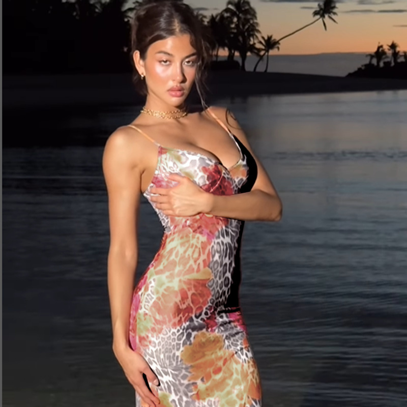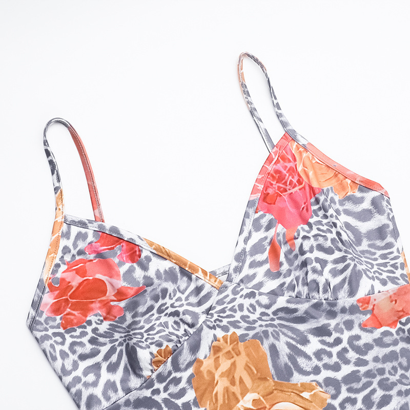 Lunivop Flower Leopard Print Deep V Backless Maxi Dresses Summer Vacation Party Outfits Sexy Dinner Date Night Women's Dress