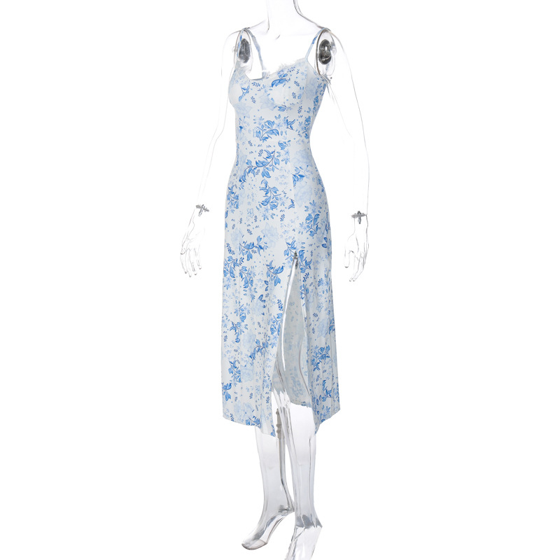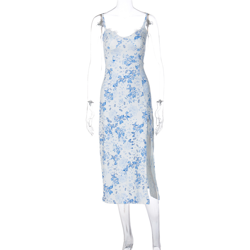 Lunivop Flower Print Sling Maxi Dress Women Y2k Split Halter Fashion Bohe Sleeveless Bodycon Vestidos Beach