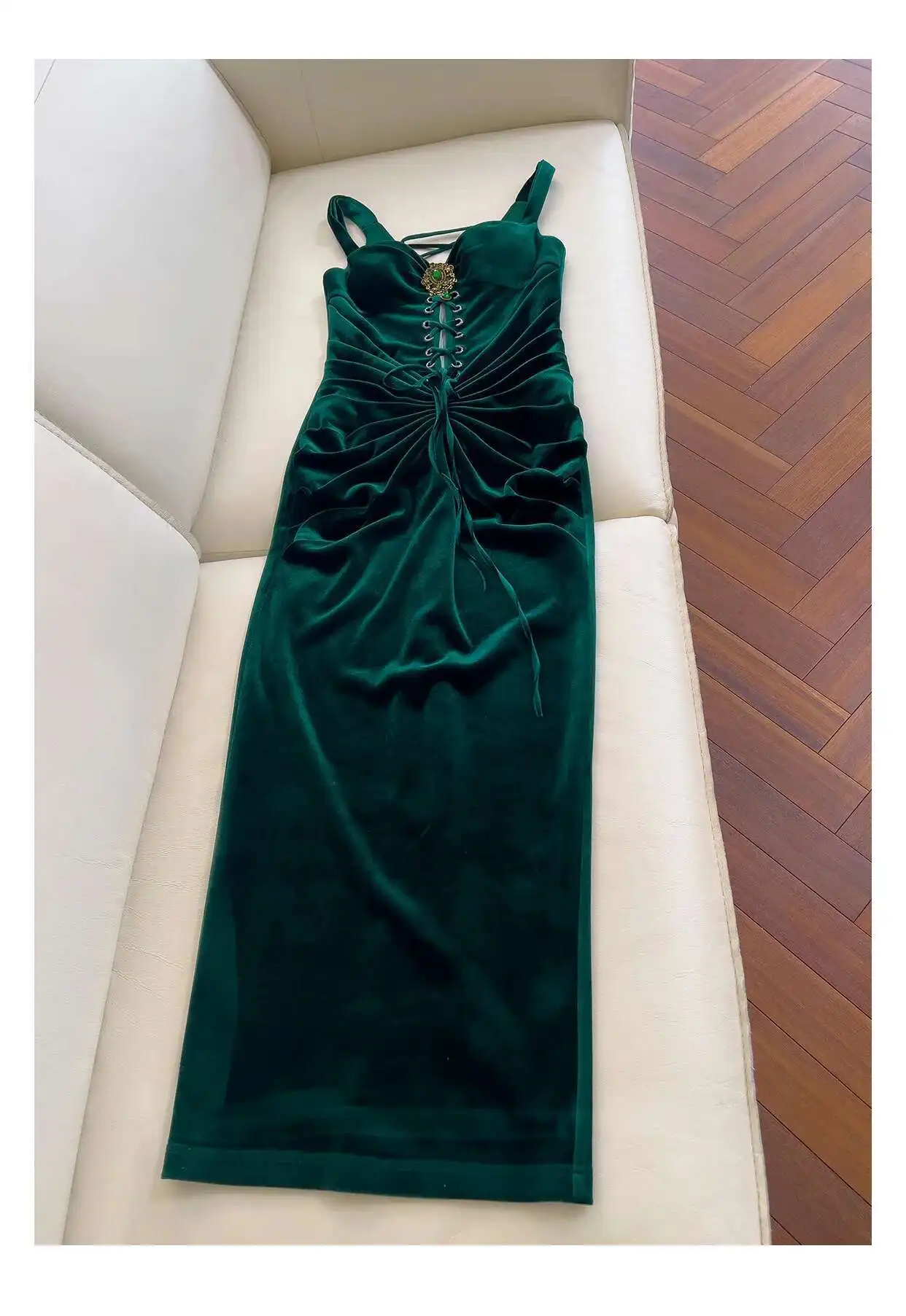 Lunivop French Slim Fit Temperament Waist Strap Strapless Waist Bag Dress With Tied Straps Pleated Velvet Dresses Female