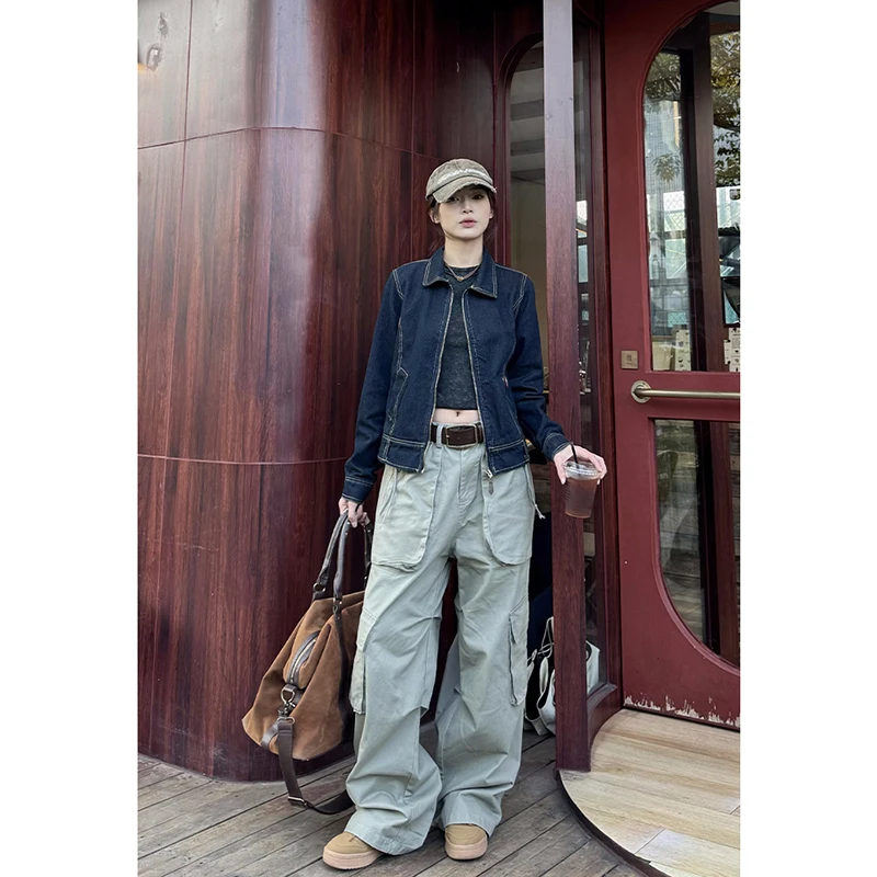 Lunivop French Style Fashion Mid Waisted Jeans Women Y2k 2024 New Waisted Vintage Straight Jeans Multiple Pockets Baggy Streetwear Jeans