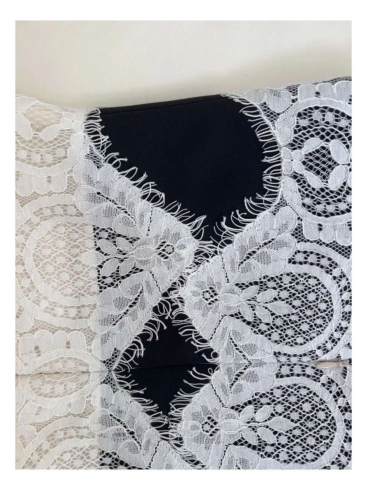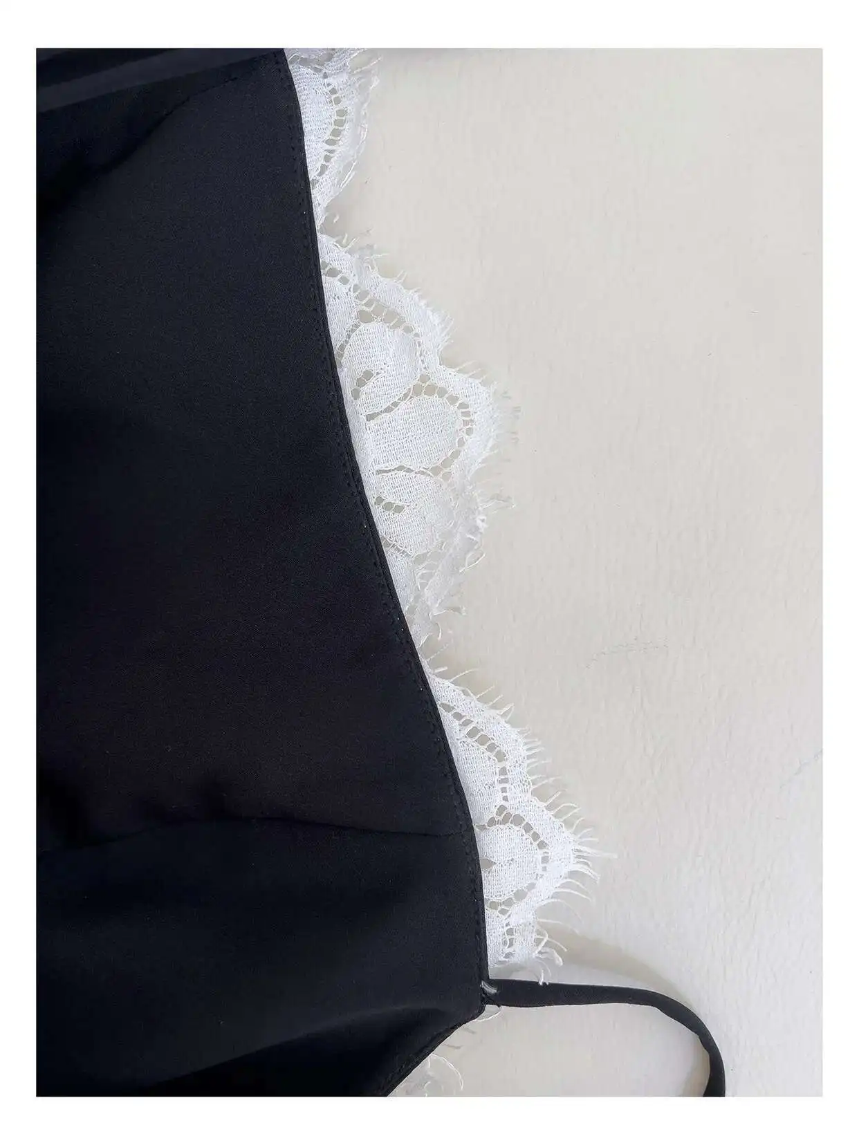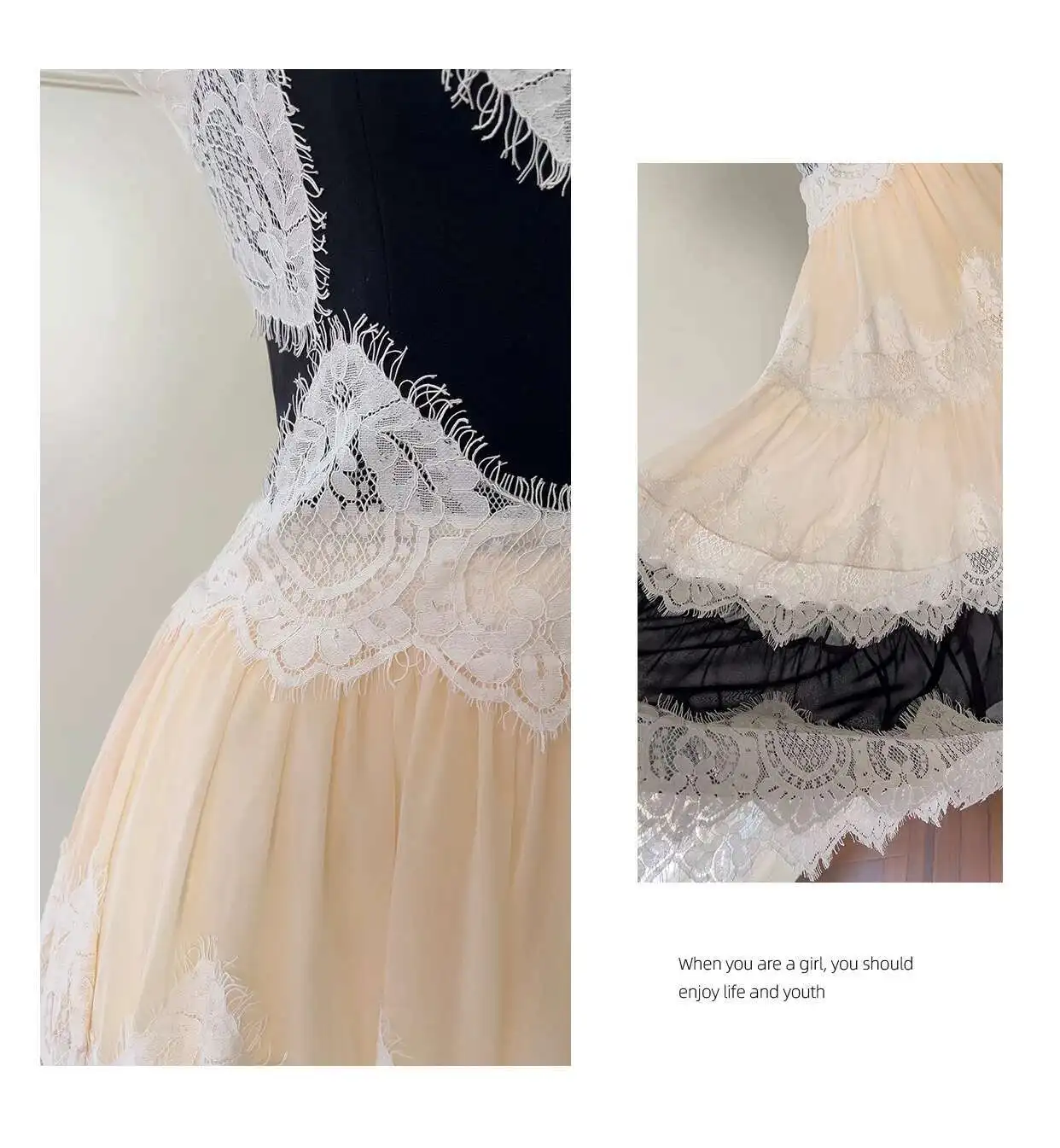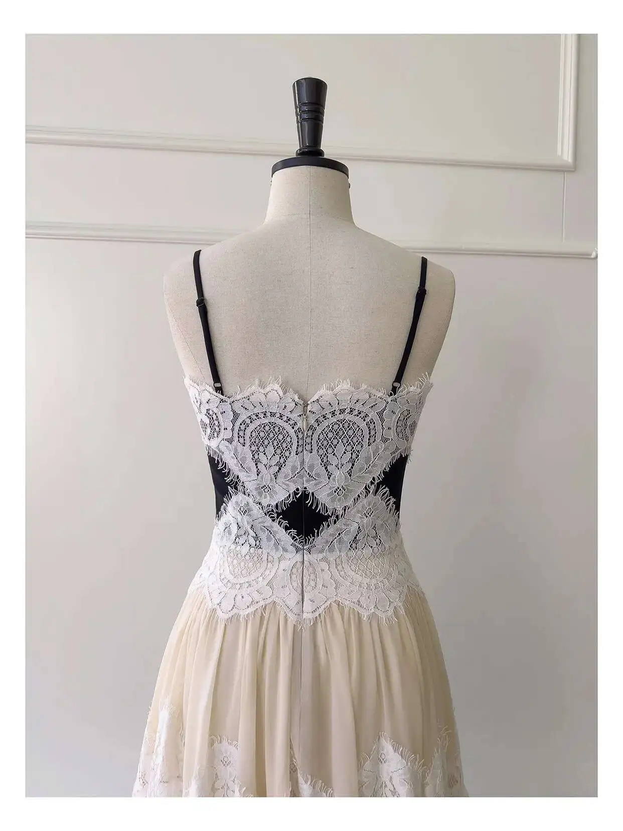 Lunivop French Style Lace Contrast Suspender Dress Spliced Sleeveless One Shoulder Evening Dresses Female 2025 Spring New