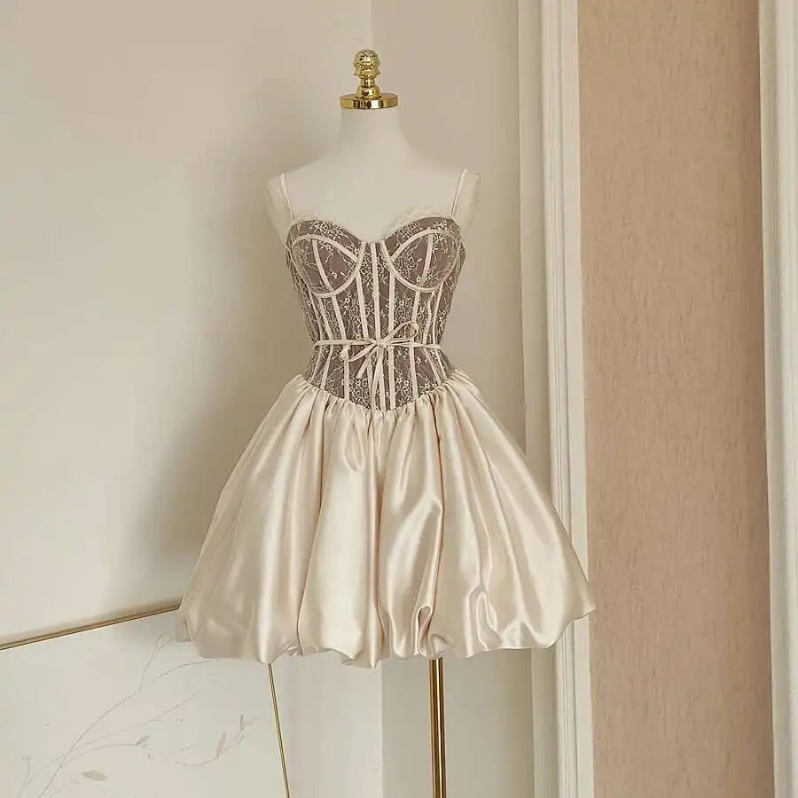 Lunivop French Style Lace-up Mesh Splicing Women Dress Block Color Lace Long Sleeve Dresses With Shorts 2025 Spring New