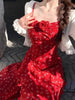 Lunivop French Two Piece Set Floral Printed Red Strap Camisole Dresses Summer Sweet Girl Waist Slimming Irregular Slit A-line New