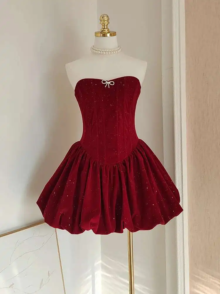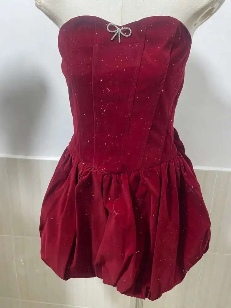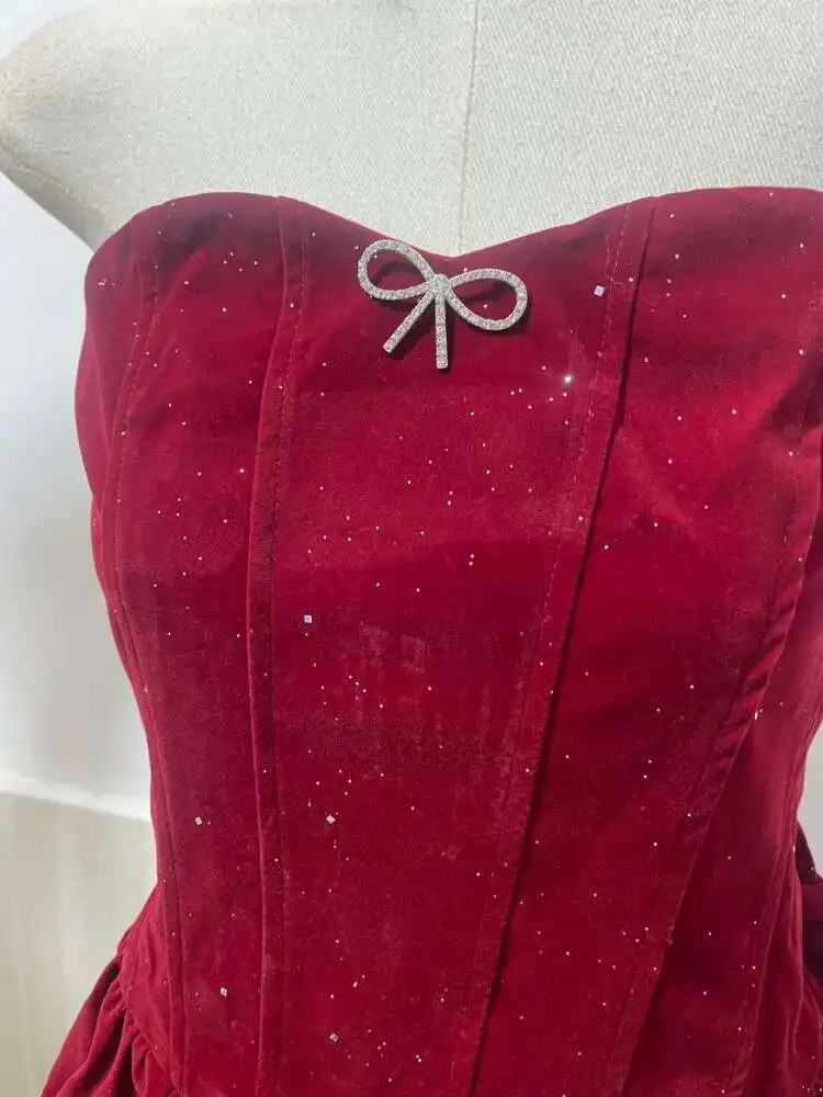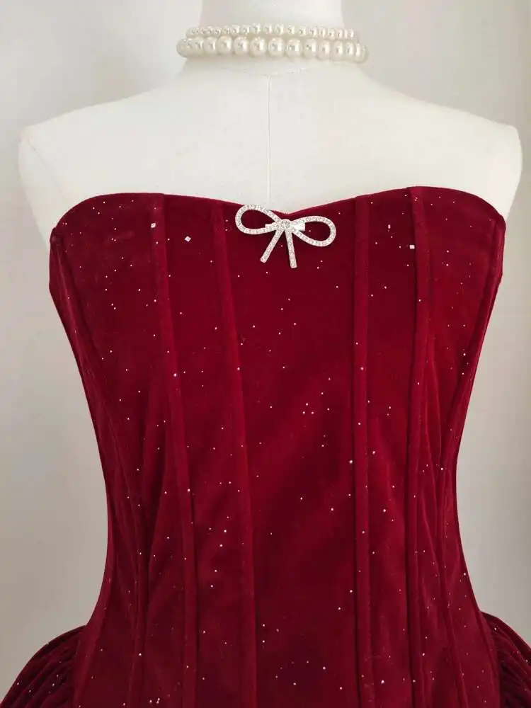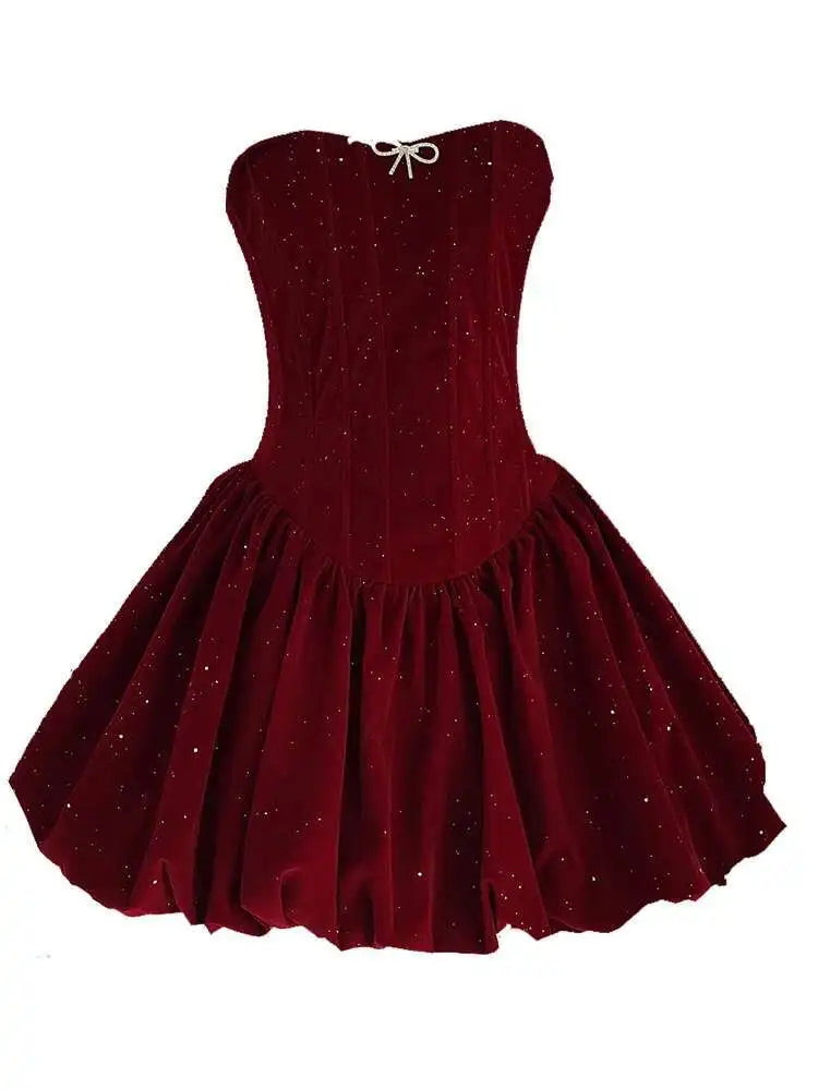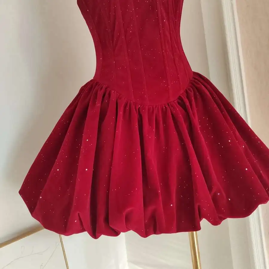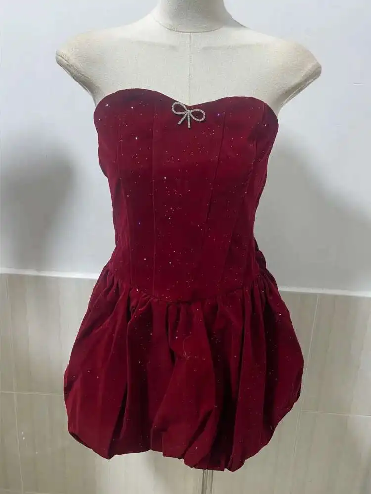 Lunivop French Women's Velvet Lace-up Dresses Strapless High Waist Sleeveless Slim Elegant Dress Female Autumn 2025 New