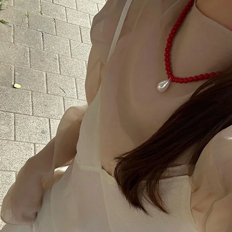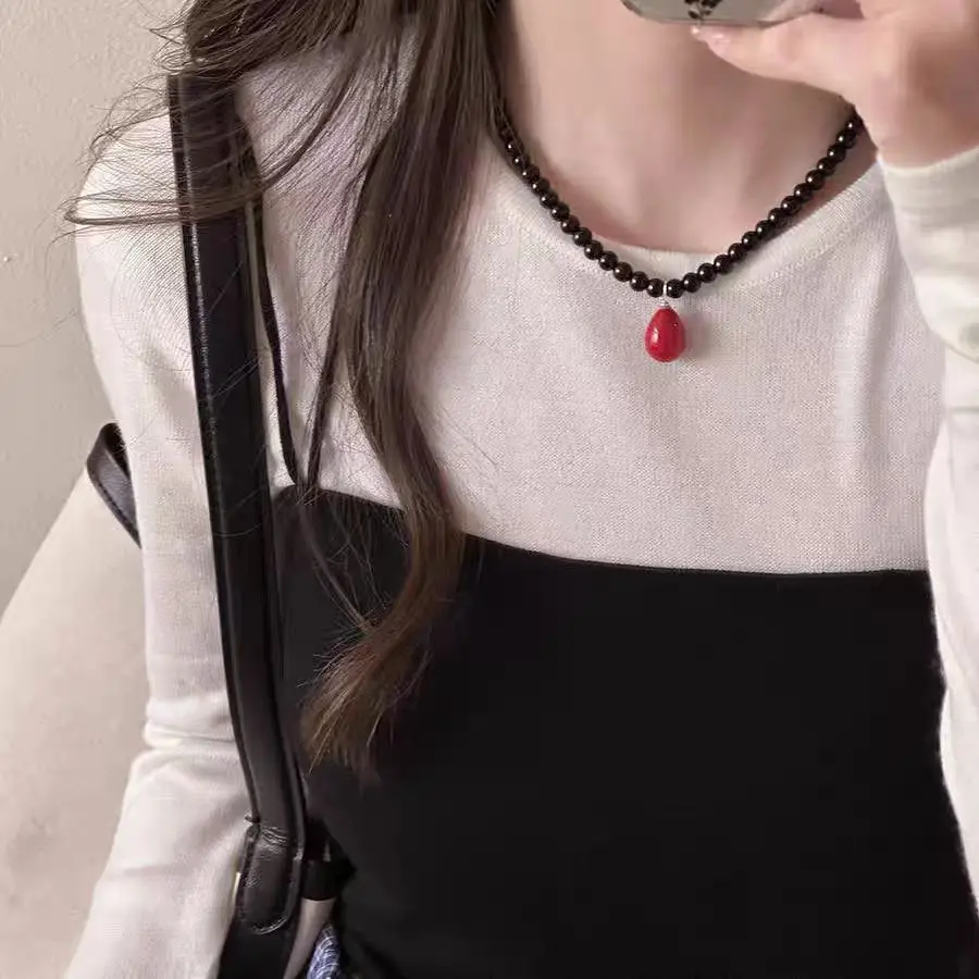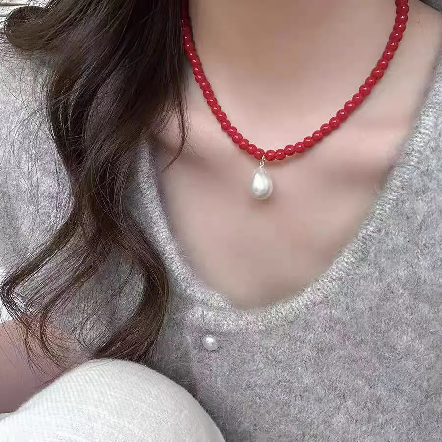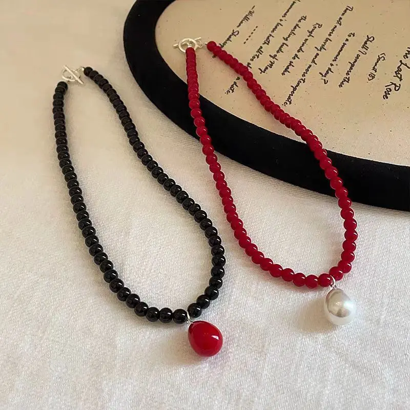 Lunivop Glass Bead Neckchain Vibrant Color Pearl Drop Pendant Necklace Stylish Choker Ornament Anniversary Birthday Gift D0LC