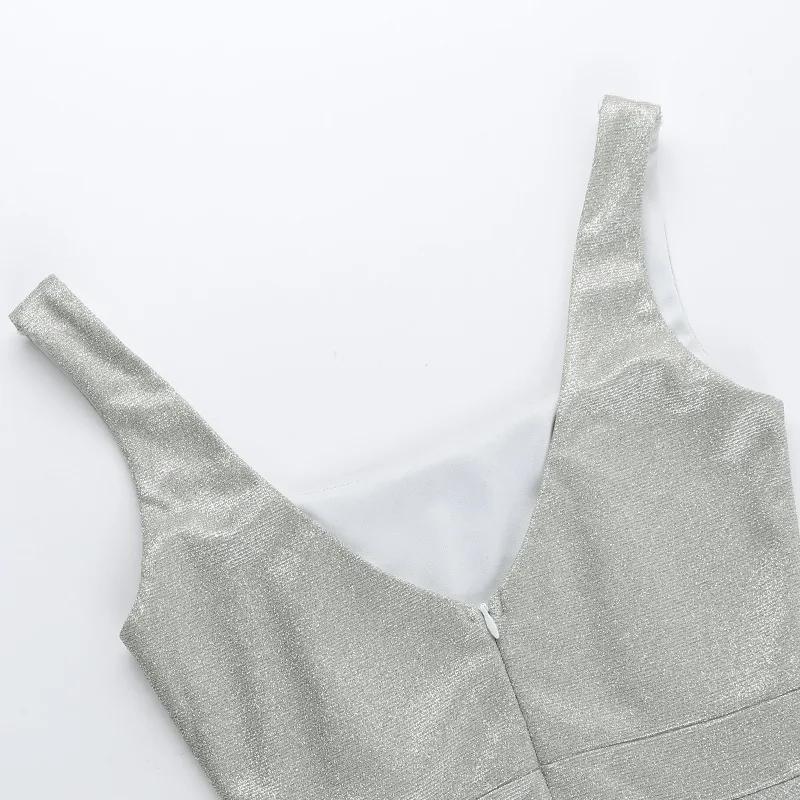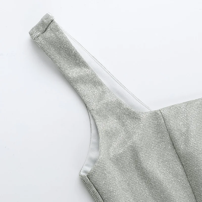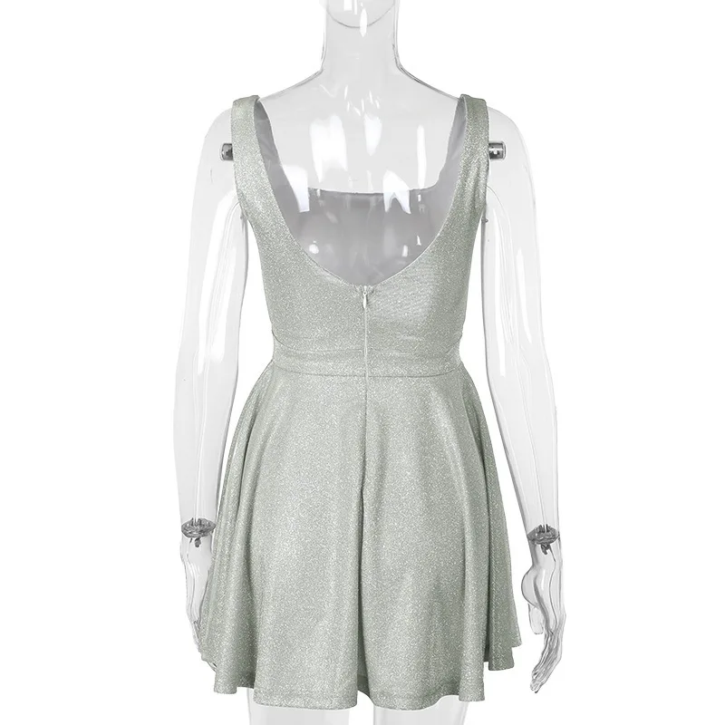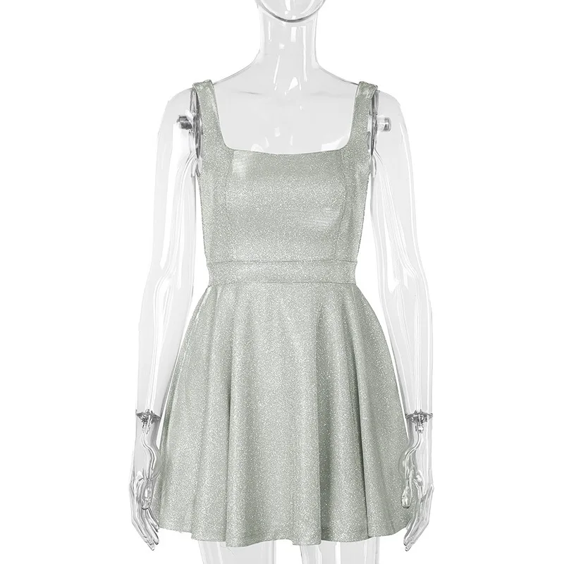 Lunivop Glitter Bright Silk Sparkling Women Dress Silver Spaghetti Strap A-line Dress Femme Autumn Skinny Elegant Party Clubwear