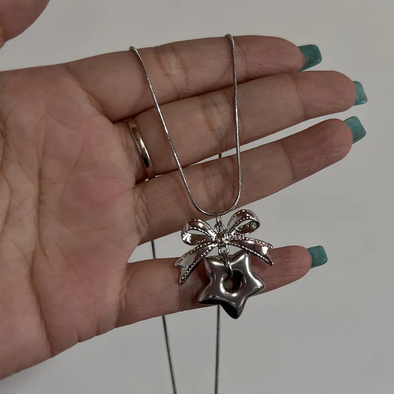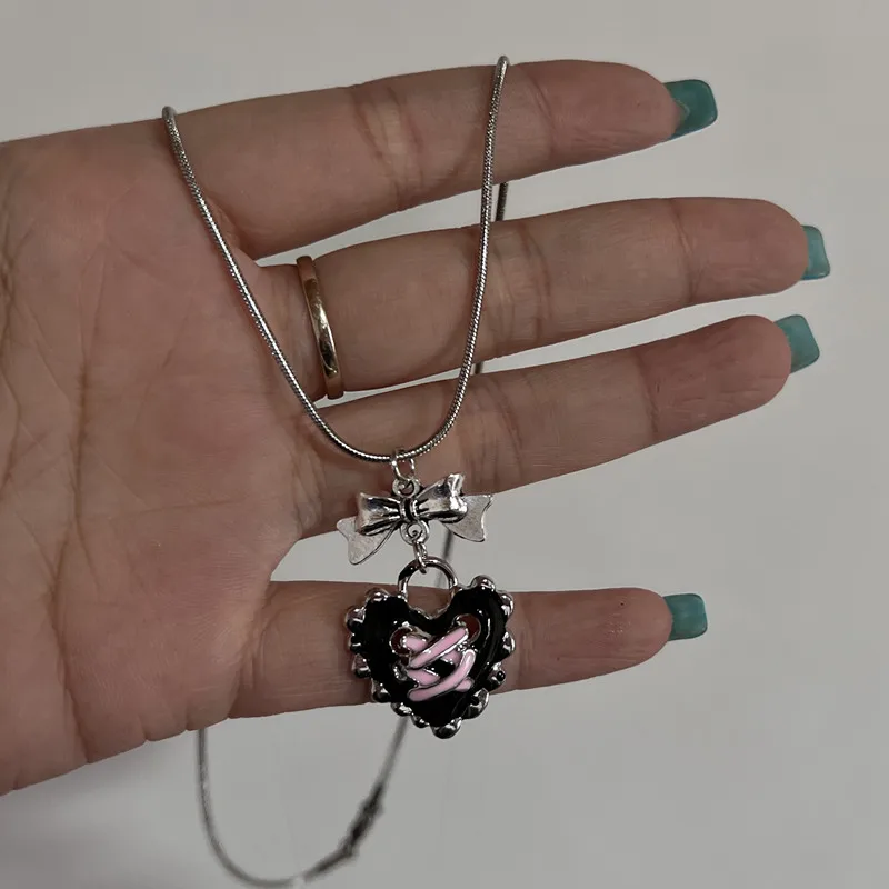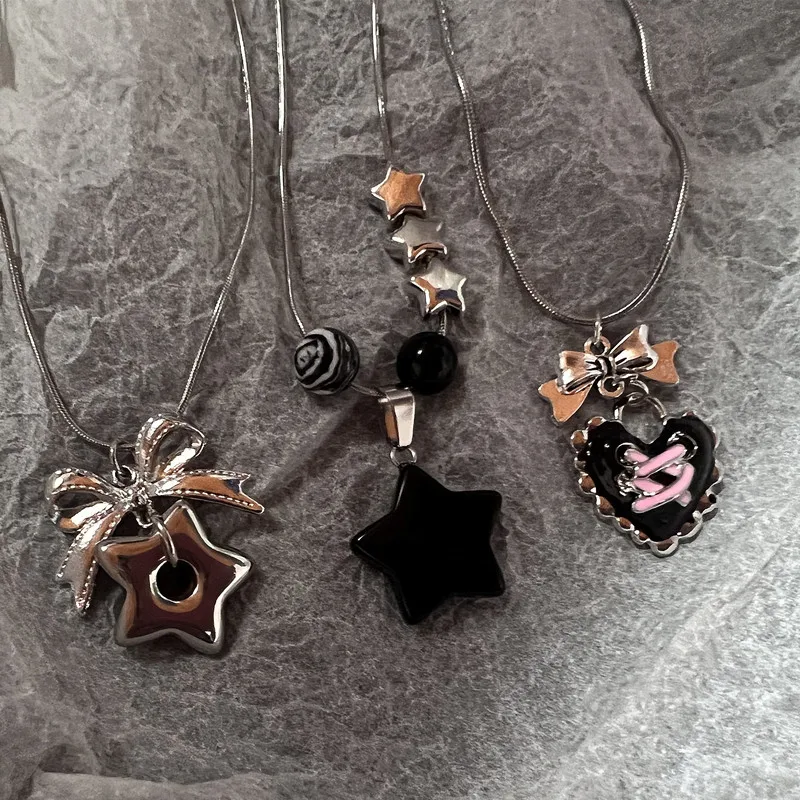 Lunivop Goth Harajuku Cute Y2k Aesthetic Bowknot Pendant Beaded Snake Chain Rope Chain Necklace For Girl Choker Cool 90s Accessories