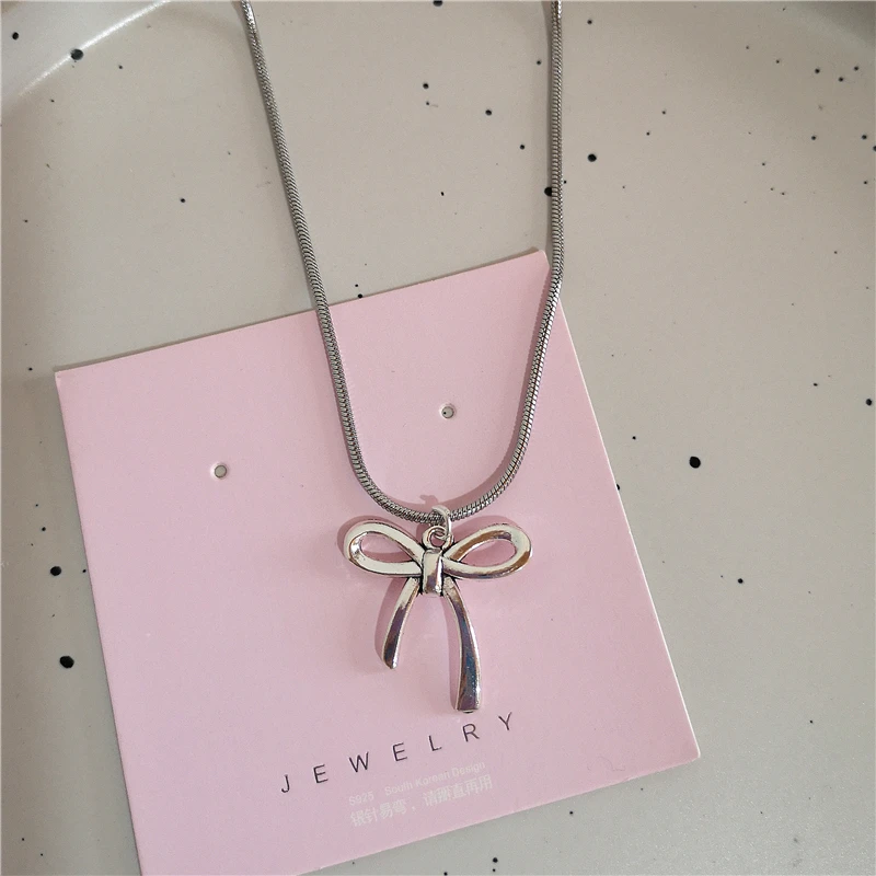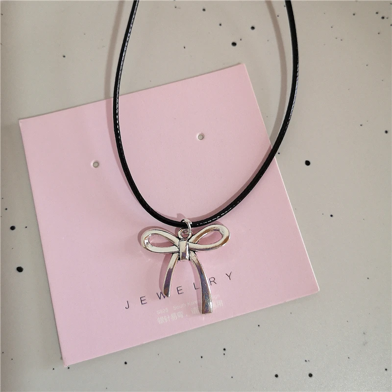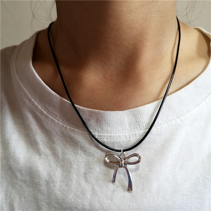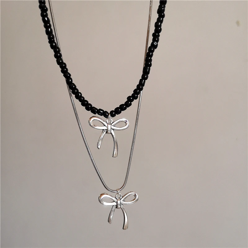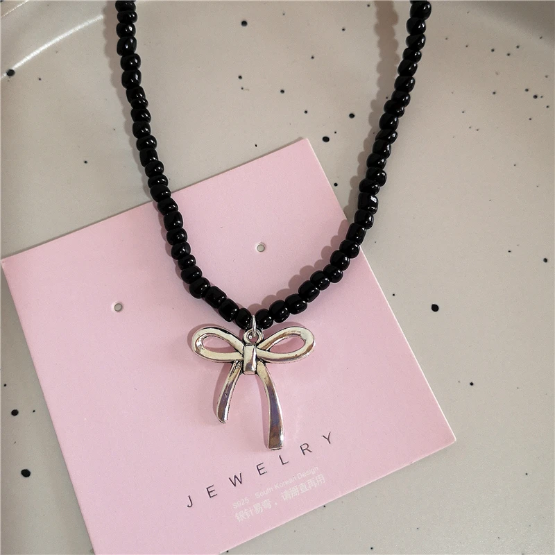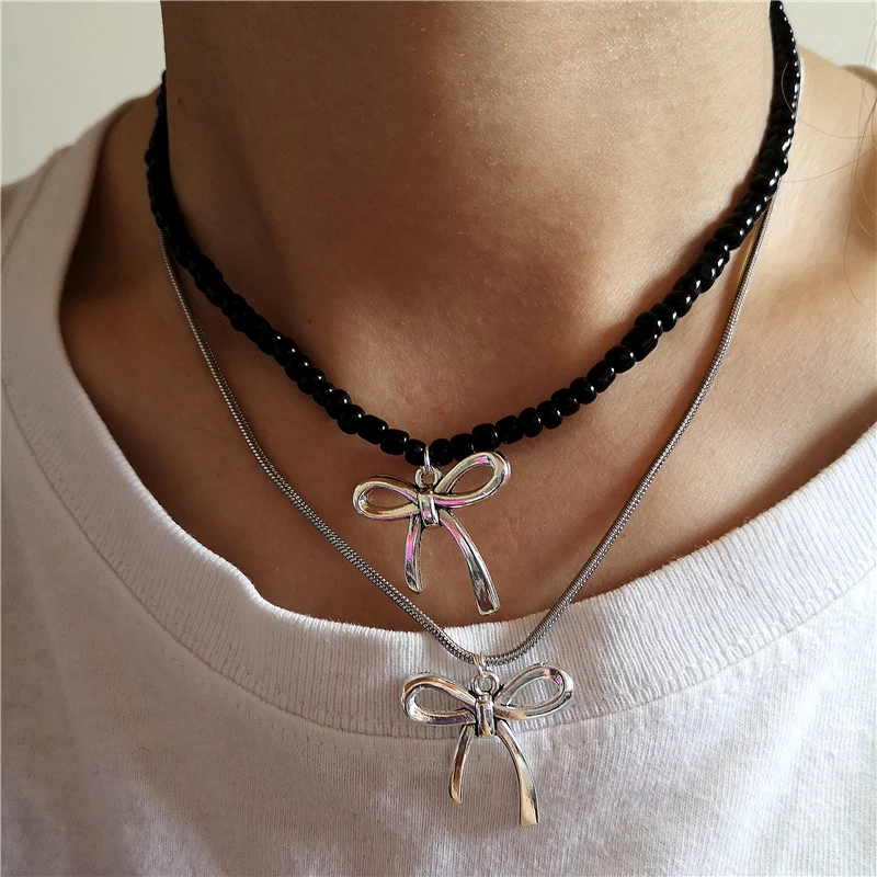 Lunivop Goth Harajuku Cute Y2k Aesthetic Bowknot Pendant Beaded Snake Chain Rope Chain Necklace For Girl Choker Cool 90s EMO Accessories