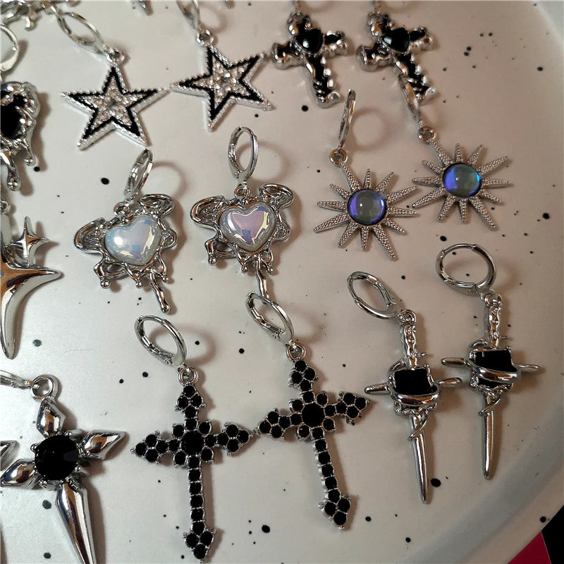 Lunivop Goth Punk Vintage Aesthetic Irregular Heart Cross Moonlight Stone Sun Pendant Earrings Women Men Grunge Y2K Jewelry Accessories
