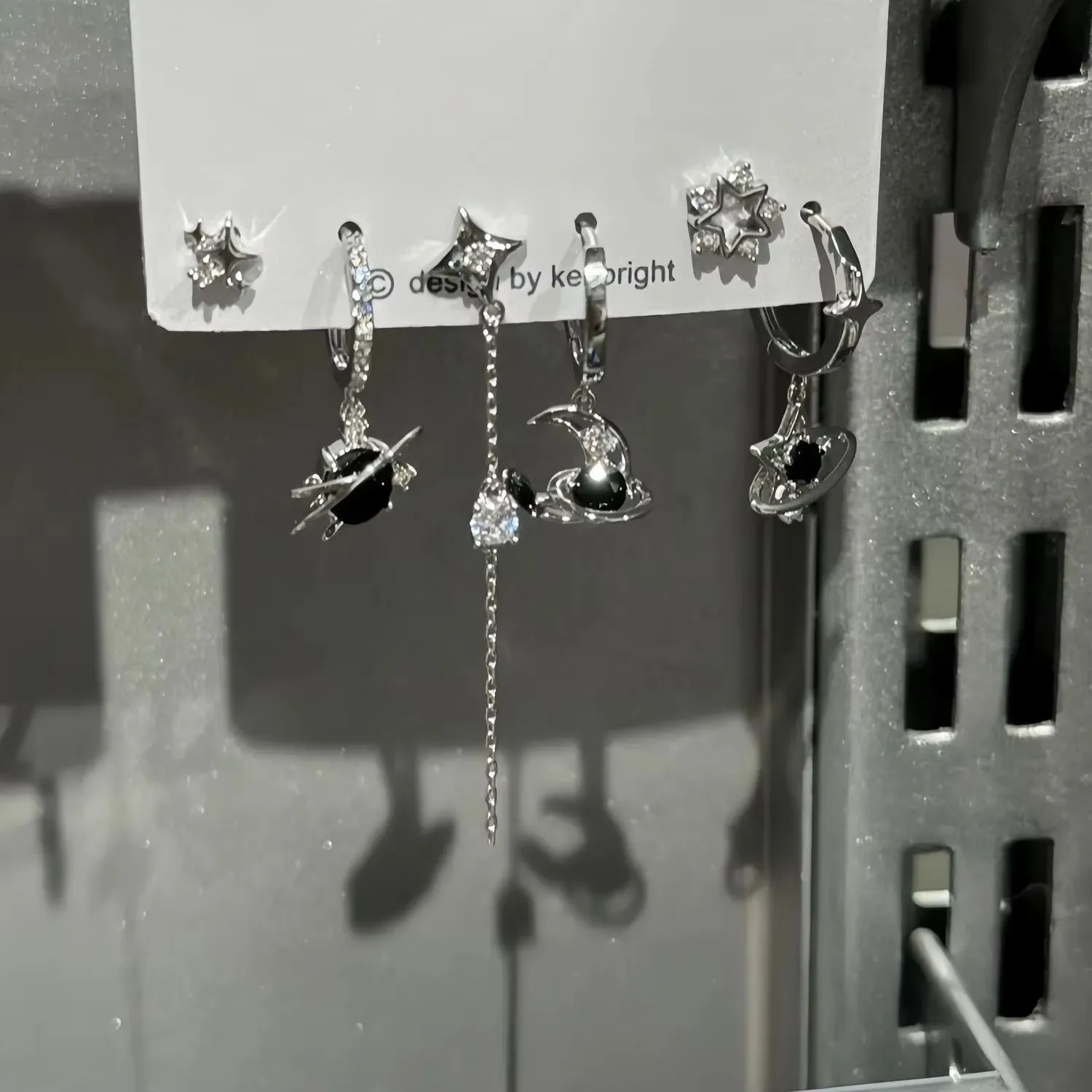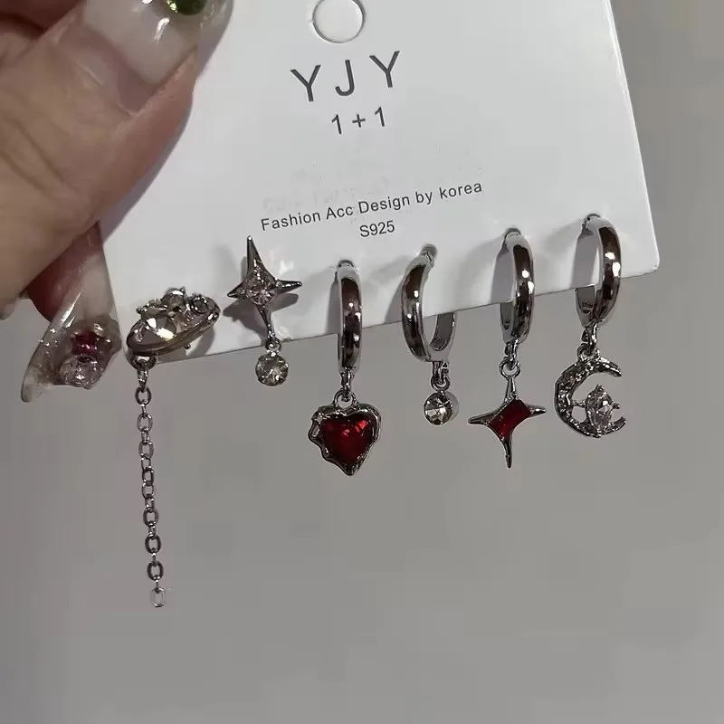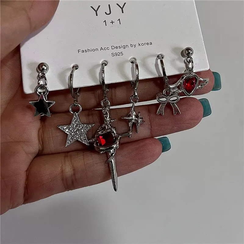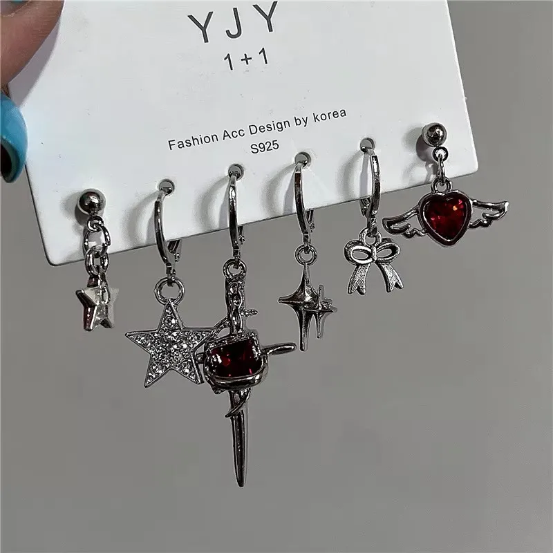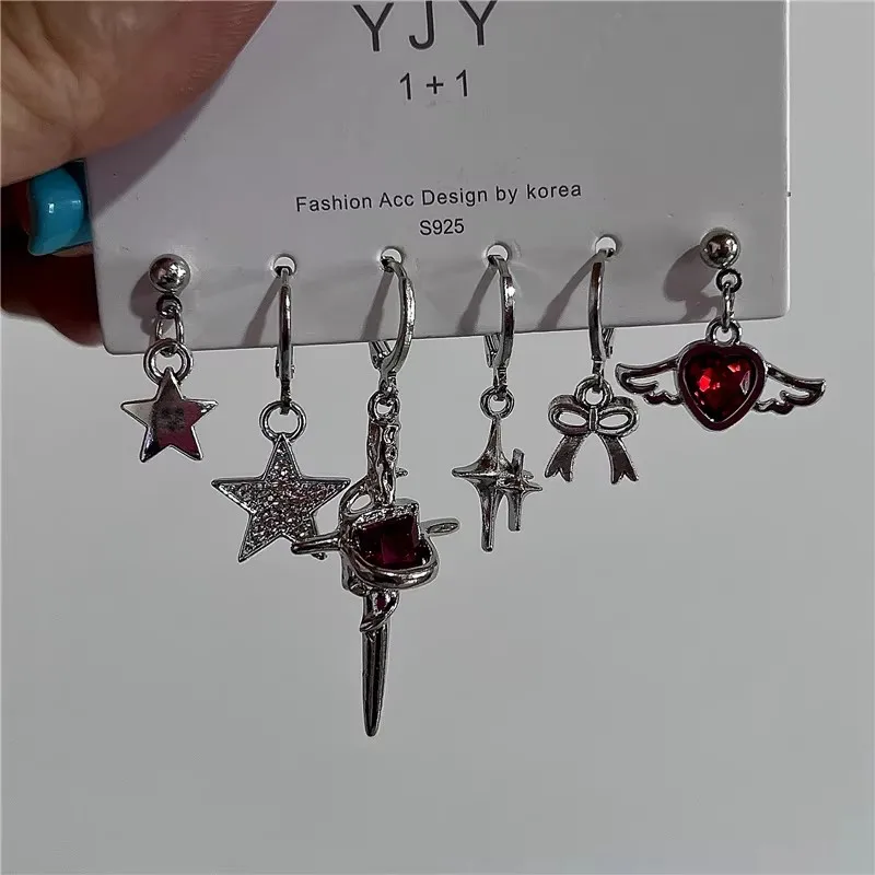 Lunivop Goth Red Crystal Star Cross Earring Set for Women Girl Vintage Aesthetic Heart Pendant Earring Trendy Y2K Jewelry Accessories