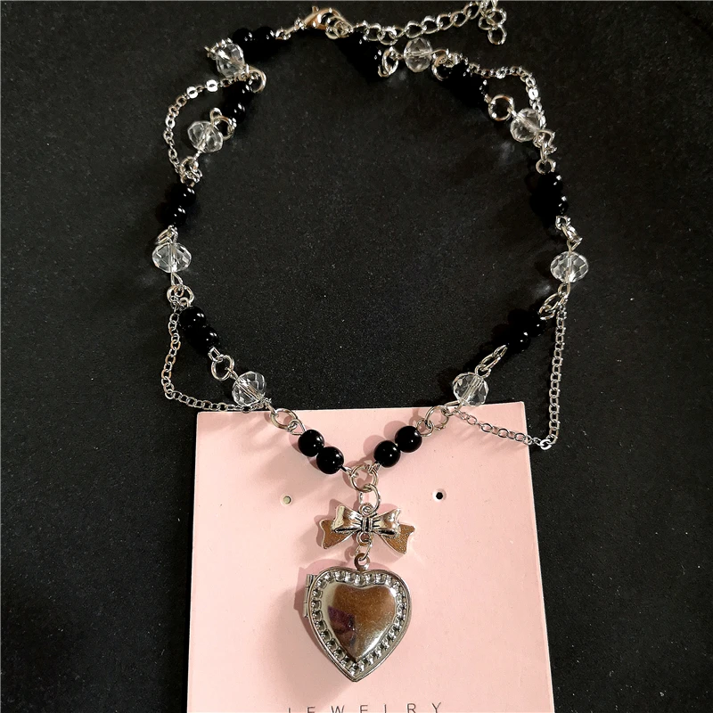 Lunivop Goth Y2K Punk Personalized Heart Locket Pendant Charm Choker Necklace For Women Aesthetic EMO Lolita Vintage Jewelry Accessories